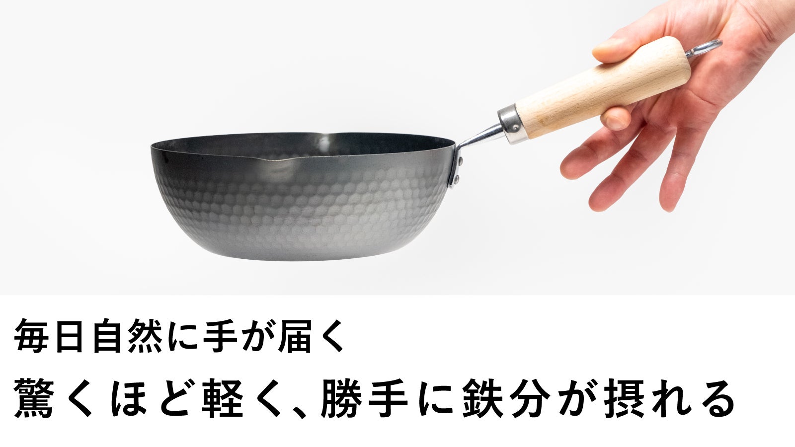 さらに鉄製だから、料理するだけで鉄分が自然に溶け出し、効率的に摂取することができます。たとえば日々の味噌汁。これで作れば素材を工夫せずとも勝手に鉄分アップに貢献します。