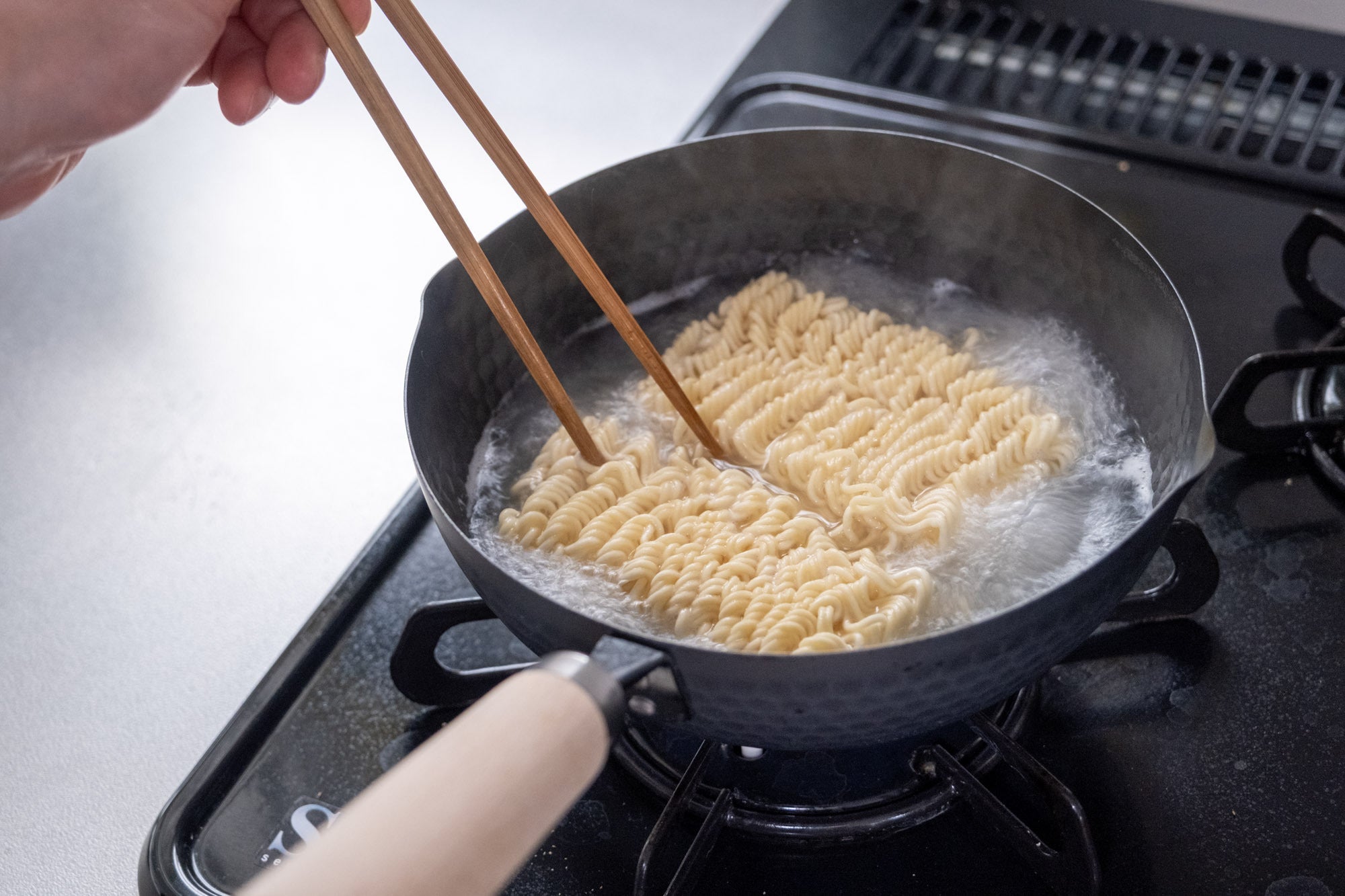これ一つで一人暮らしのメイン鍋としても優秀。インスタント麺にもぴったりのサイズ感です。