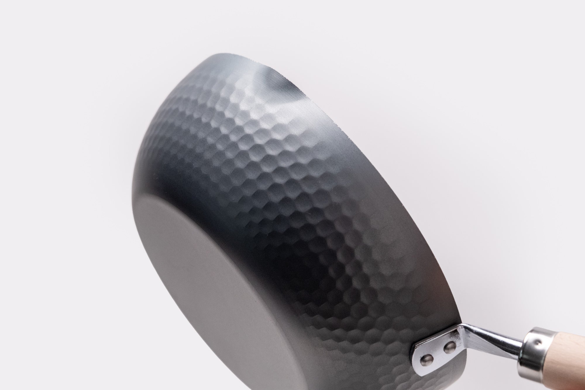 窒化処理によって強度を高めているため、本体を薄く、軽量に仕上げることができました。女性でも片手で楽に扱え、炒め物や盛り付けの際も手首に負担がかかりません。
