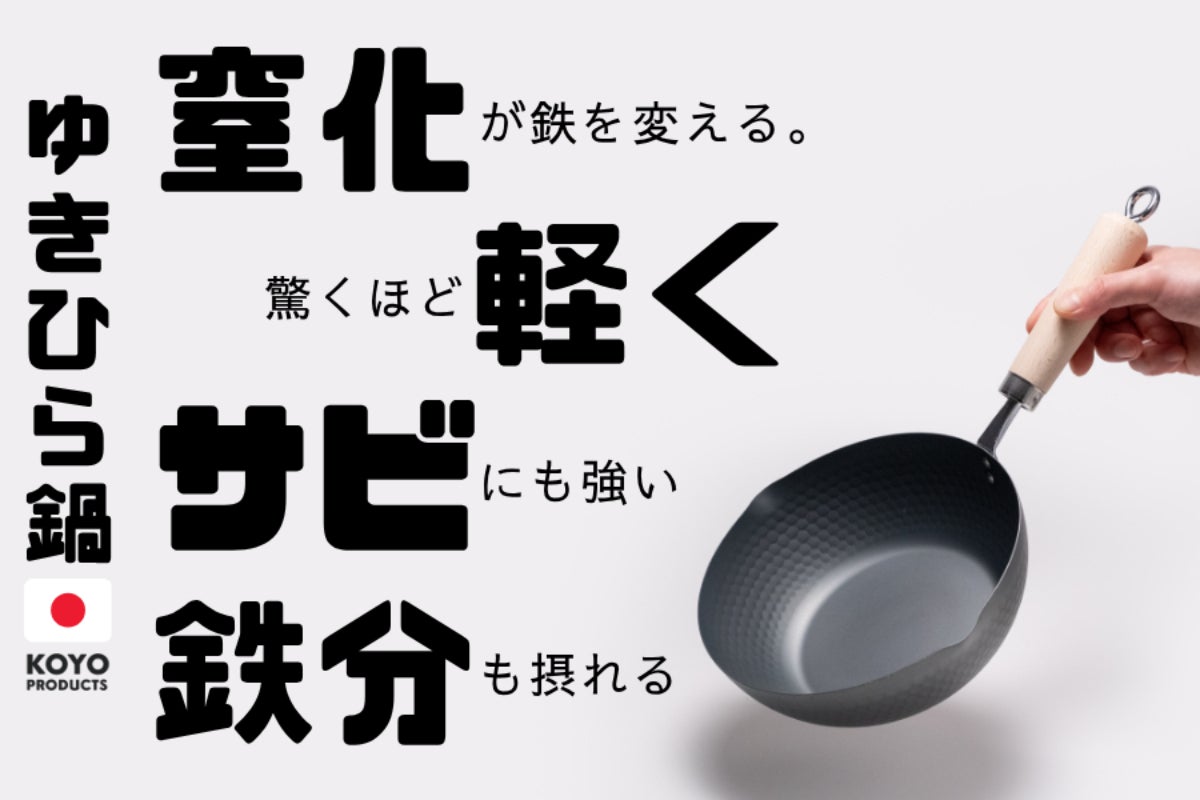 使い勝手が良く、優れた製品をお届けするブランド「KOYO PRODUCTS」から、鉄の弱点を克服した、使い勝手バツグンの雪平鍋が登場。窒化でサビにくく、剥がれにくく、くっつきにくさを実現。さらに圧倒的な軽さで日々の料理を美味しく仕上げます。