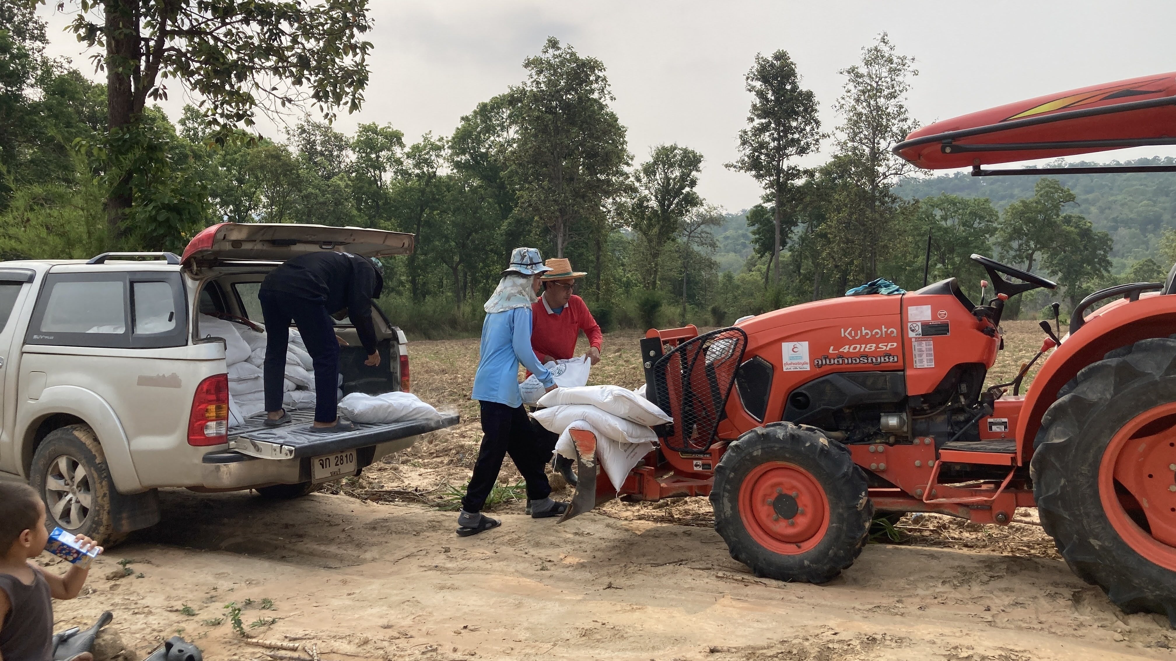 一袋50バーツの苦土石灰を、50袋無償でいただくことができました。このおかげで、土地整備に必要だった苦土石灰の費用が全額不要となりました。