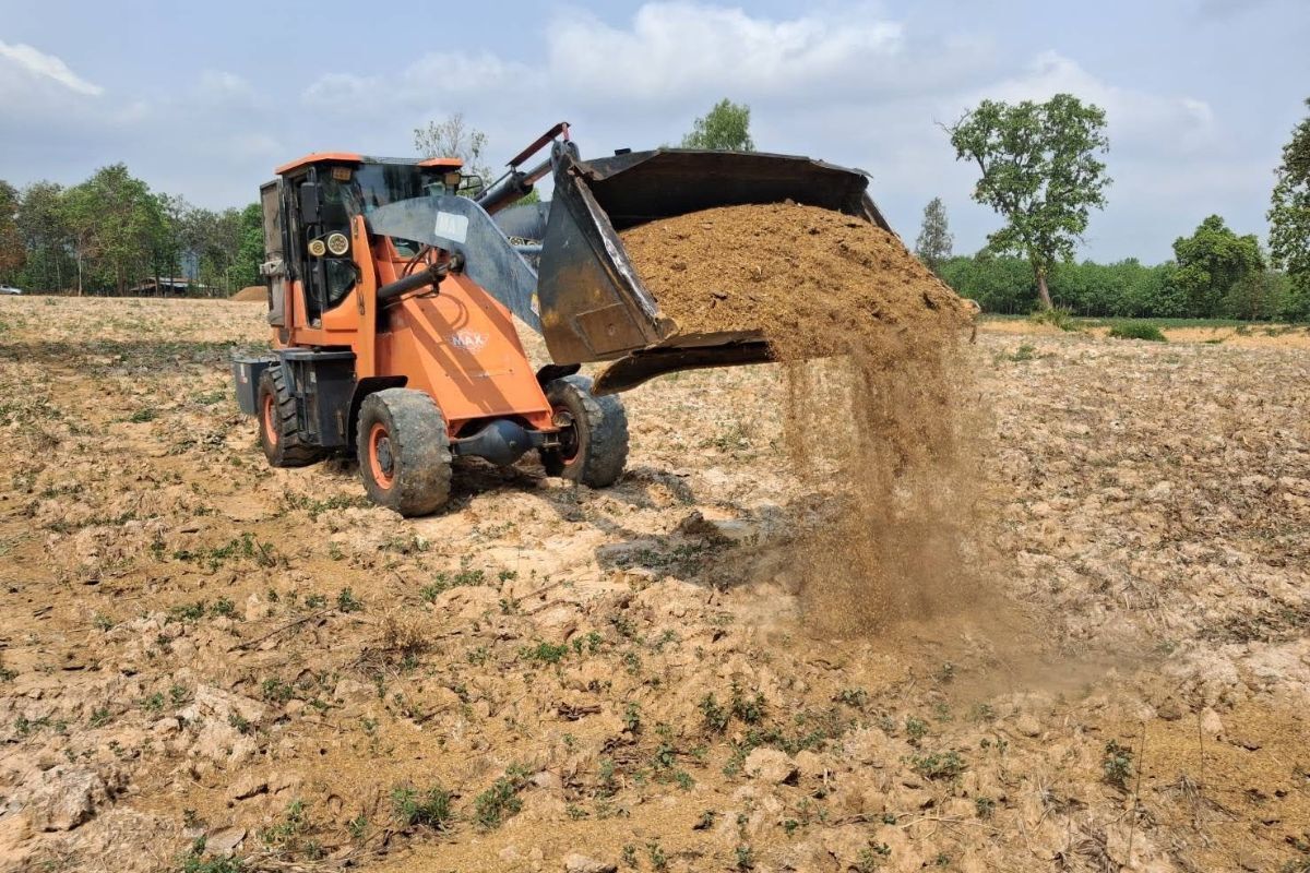 この作業を力強く支えてくれているのが、プロジェクトメンバーの友人Noiです。彼は農業機器のエンジニアで、トラクターやショベルカーなどの機器を自ら所有しています。そのおかげでレンタルの必要がなく、必要な時に自由なタイミングで作業を進めることができています。Noiと私の夫、男性陣が機器を運転しながらどんどん土地整備を進めてくれています。それぞれが得意なことを持ち寄って協力し合える、本当に心強いメンバーだと感じています。