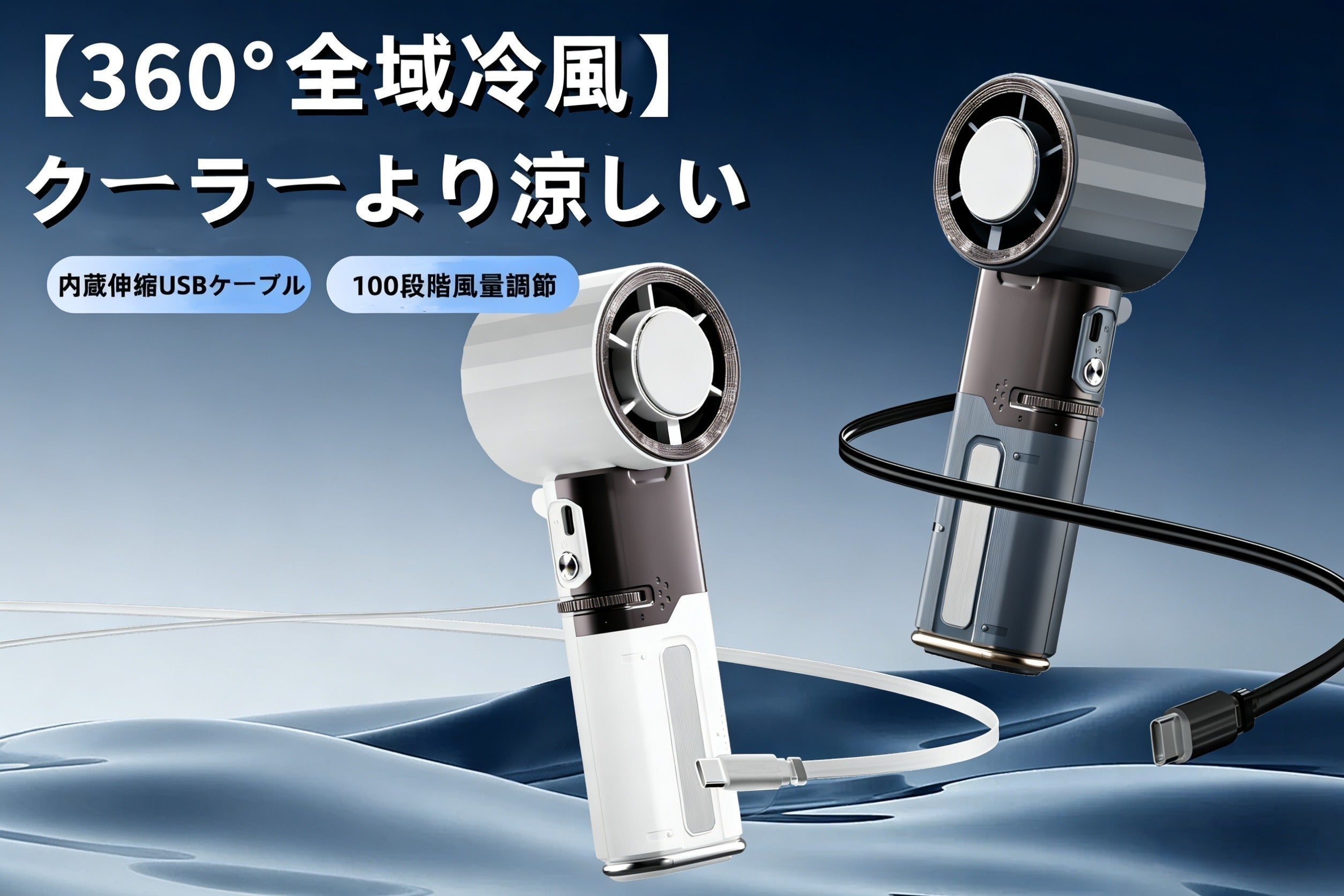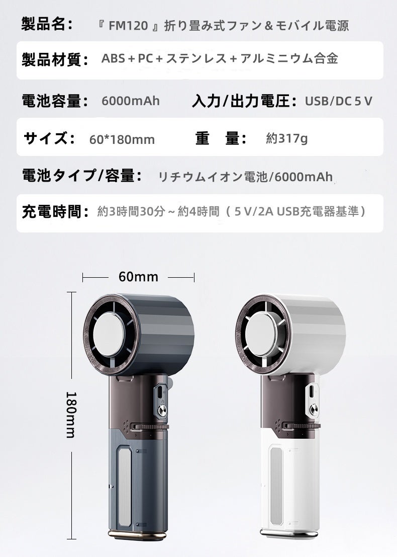 6000mAh大容量バッテリー内蔵の手持ちファン。