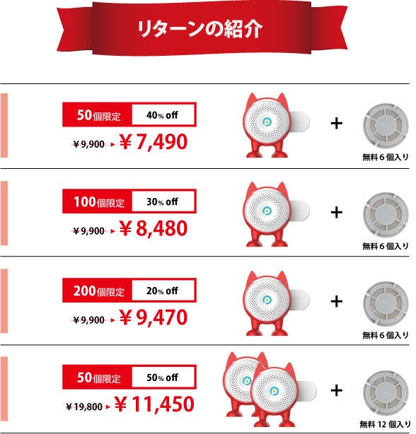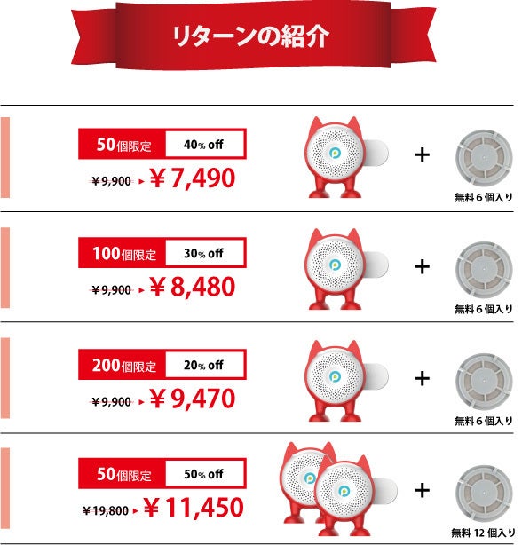 今回は、日本初上陸を記念して、PM2.5フィルター6個が無料でセットされます。