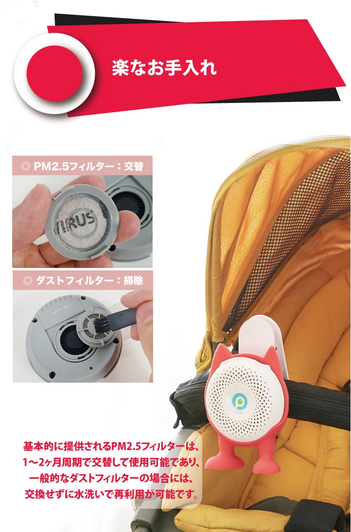 ②PM2.5から解放、ベビーカー用空気清浄機プリべ。