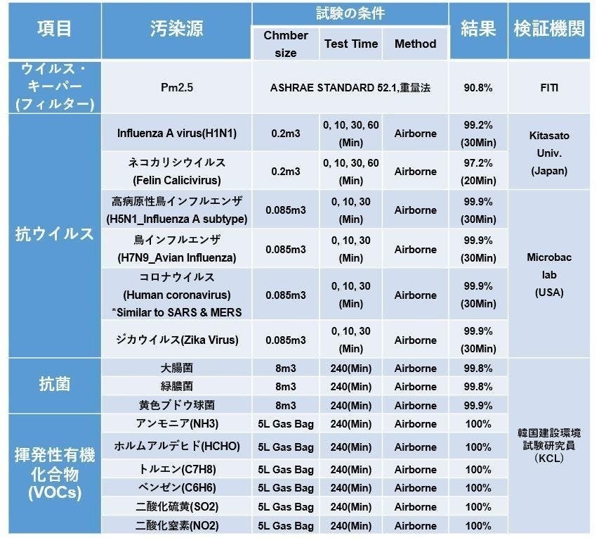 全16種の有害物質除去試験をクリアーしたプリベが多い場所の空間中にあるウイルスから体を守ります。プリべは韓国のみならず日本とアメリカの公的認定試験機関で全16種の有害物質除去試験をクリアしたフィルターとプラズマモジュールを基にして開発されました。