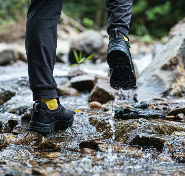 ――ゆったりとした履き心地。――濡れた地面でも止まれるグリップ力。――頼れる防水性。
