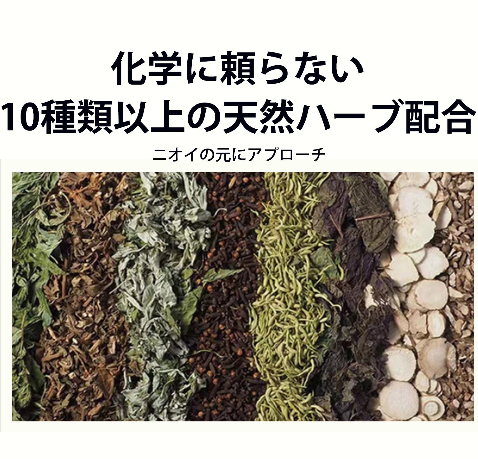 ハーブ由来の成分を活用し、ニオイの元をしっかり分解します。ニオイをごまかすのではなく発生源から整えることで、猫トイレまわりの空気をすっきりとした状態に保ちます。