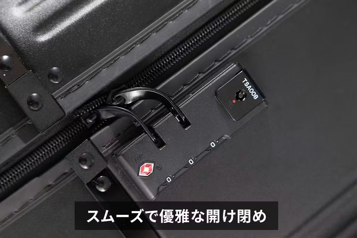 【最新セキュリティ】世界基準の安心、TSA008ロック搭載。セキュリティチェックが最も厳しいアメリカ渡航にも必須の「TSAロック」。 VELOには、その中でも最新規格である**「TSA008」**を採用しました。 鍵をかけたまま航空会社に預けることができ、検査時もカギを壊される心配がありません。海外旅行やビジネス出張に、ワンランク上の安心をプラスします。
