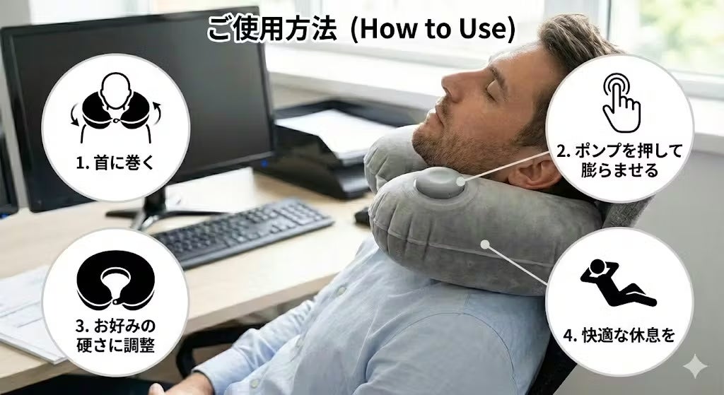 移動時間を、至福のリラックスタイムへ。人間工学設計で首・肩の負担を軽減。サッと膨らませて使え、収納は驚くほどコンパクト。VELOと共に、ワンランク上の快適な旅を。