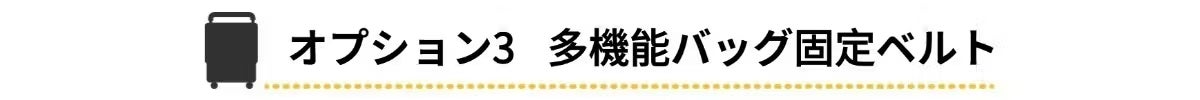 「箱体加固」と「バッグ固定」の2WAY仕様。移動中にずり落ちがちなサブバッグをハンドルにガッチリ固定。さらにVELO本体の荷崩れも防ぎます。これ一本で、移動の重みとストレスを劇的に軽減。