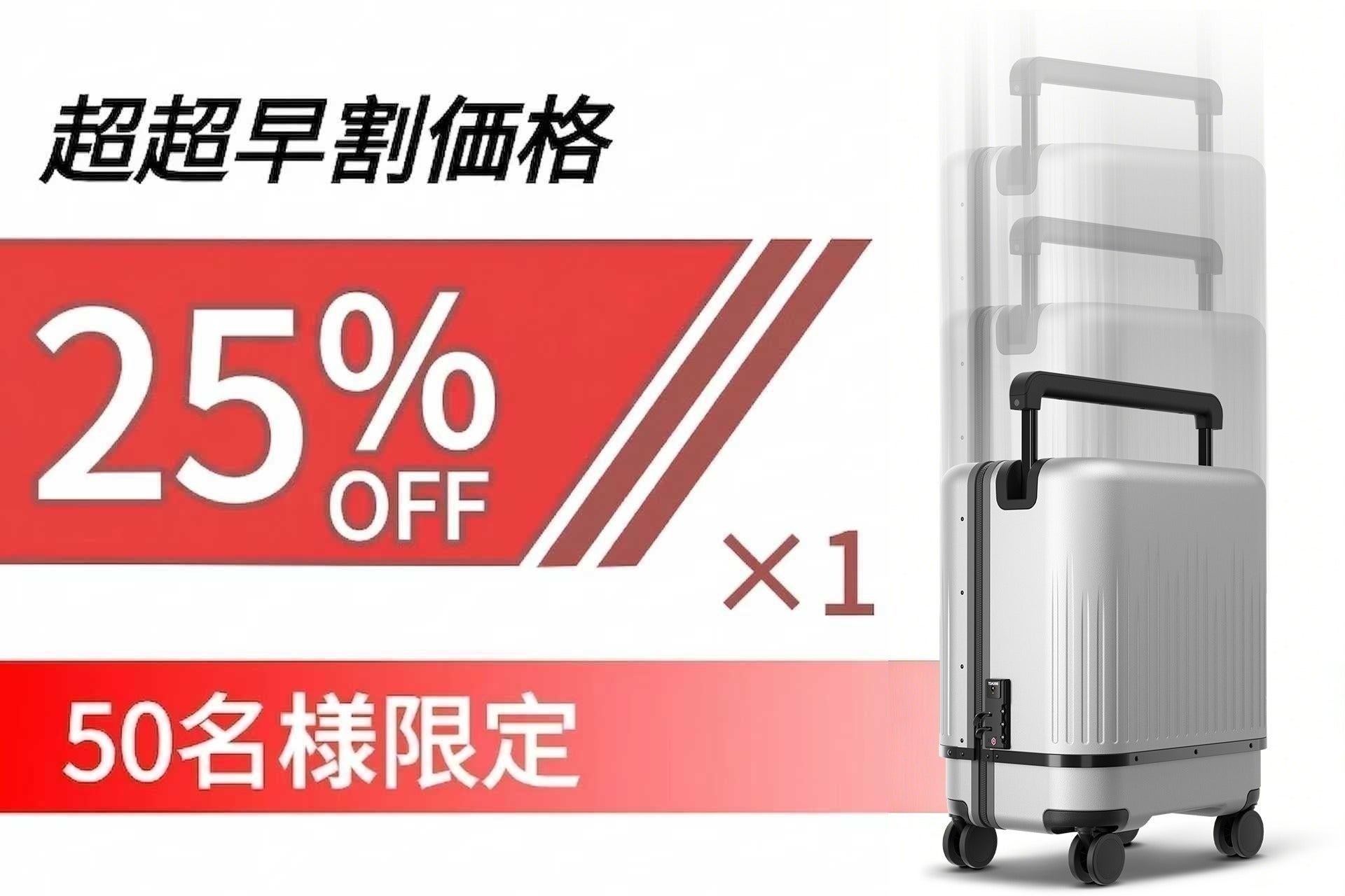 【速報:CAMPFIREにてクラウドファンディング開始!】本日4月14日(火) 10:00より、変形するスマートスーツケース**「VELO」第3世代**の先行販売をCAMPFIREにて開始いたしました。■ シルバーモデル限定:100個限定で「翌日発送」対応!通常、クラウドファンディングではお届けまでにお時間をいただきますが、今回は特別にご用意しました。「シルバー(Silver)」モデルに限り、ご支援いただいた翌日に発送いたします! ■ 限定数: 先着100個 特典: 待たずにすぐ、次世代の旅行体験をスタートできます。 ※無くなり次第終了となりますので、お急ぎください! ■ ビックカメラ池袋西口 IT TOWER店で実機をチェック!本日より、**ビックカメラ池袋西口 IT TOWER店(Bic FIRE)**にて実機の展示もスタートしました。 「翌日発送のシルバーの質感を確認したい」「サイズの変化を試したい」という方は、ぜひ店頭へお越しください!■ 多くのメディアが注目フジテレビ「めざましテレビ」をはじめ、多くのメディアで紹介された「サイズが変わる」魔法のスーツケース。今回のCAMPFIREプロジェクトが、お得に手に入る最後のチャンスかもしれません。▼今すぐシルバーモデルを確保するhttps://camp-fire.jp/projects/939882/view▼展示情報場所:ビックカメラ池袋西口 IT TOWER店 3F(Bic FIREコーナー)「明日発送、次の旅へ。」皆様の熱いご支援をお待ちしております! もっと見る