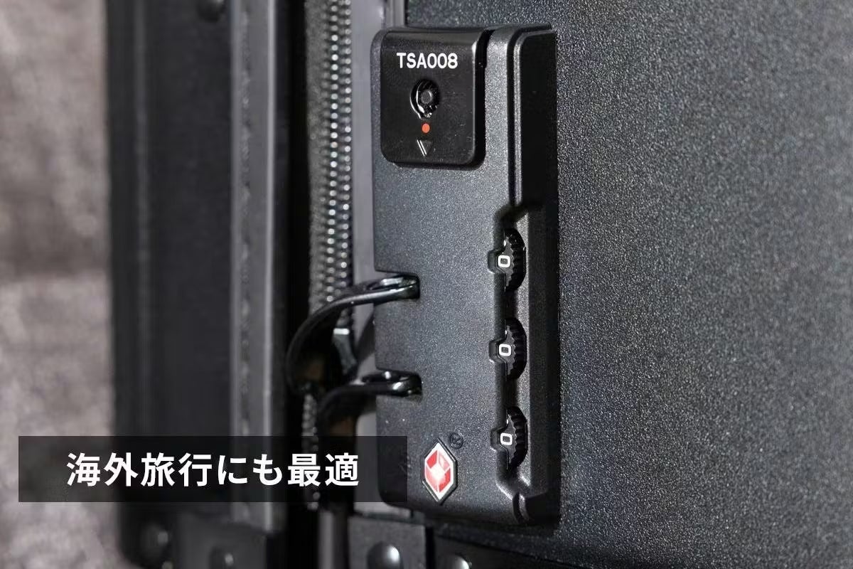 【最新セキュリティ】世界基準の安心、TSA008ロック搭載。セキュリティチェックが最も厳しいアメリカ渡航にも必須の「TSAロック」。 VELOには、その中でも最新規格である**「TSA008」**を採用しました。 鍵をかけたまま航空会社に預けることができ、検査時もカギを壊される心配がありません。海外旅行やビジネス出張に、ワンランク上の安心をプラスします。