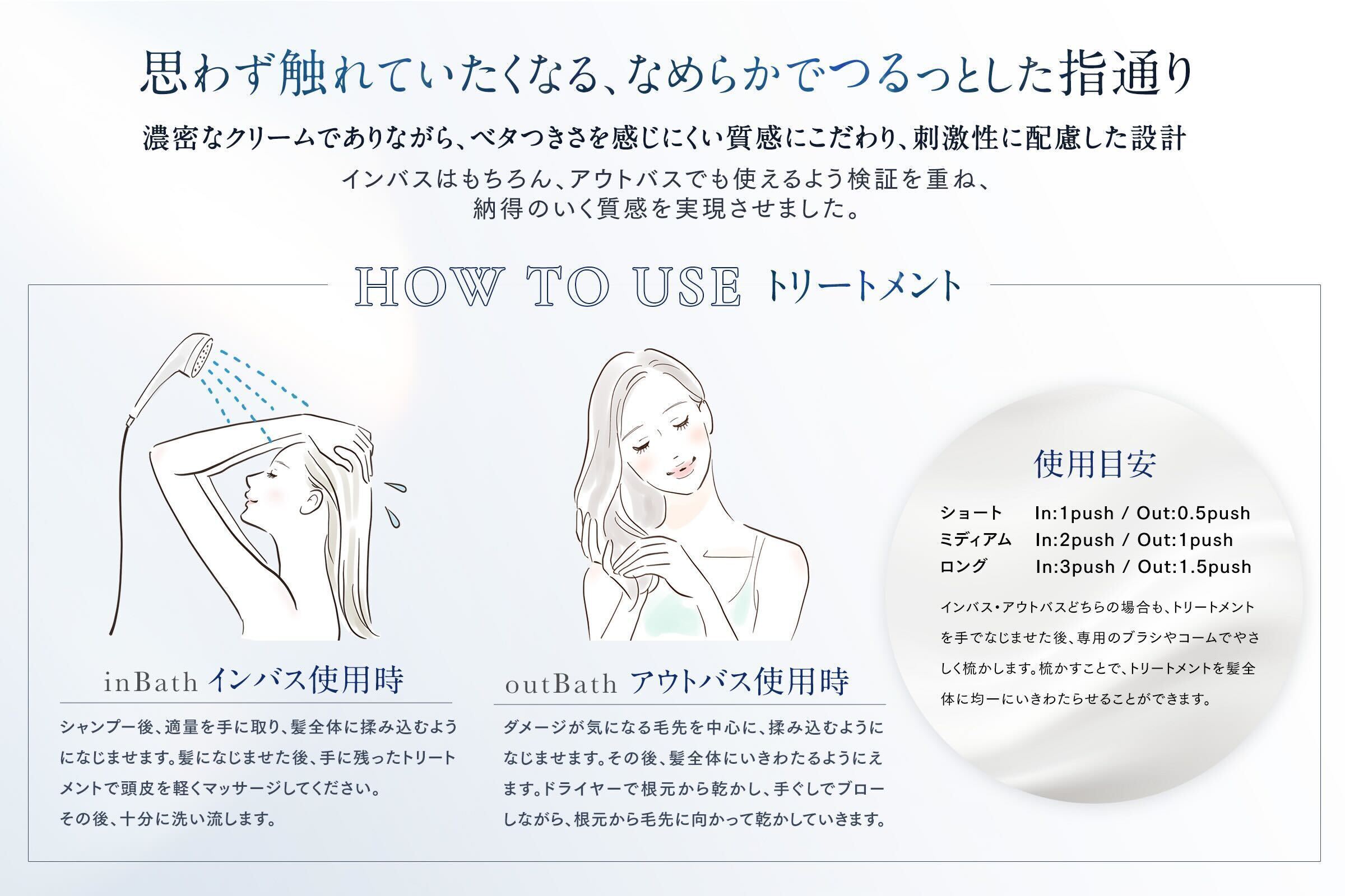 なので、このアウトバスで使ってもまったくベタつかず、さらさらツルツルに仕上がる質感には、かなり試行錯誤した自信作です。