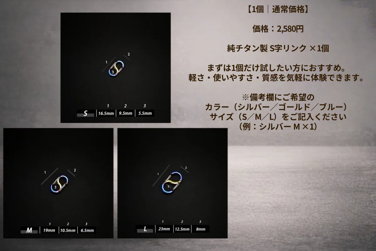 今回ご紹介するのは、純チタン製のS字リンク(ミニカラビナ)です。