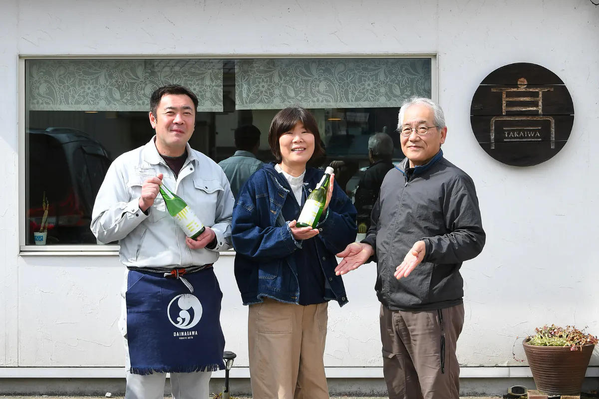 (左)大納川副杜氏・鈴木 圭さん (中)高橋 まゆみさん (右)カフェのマスター