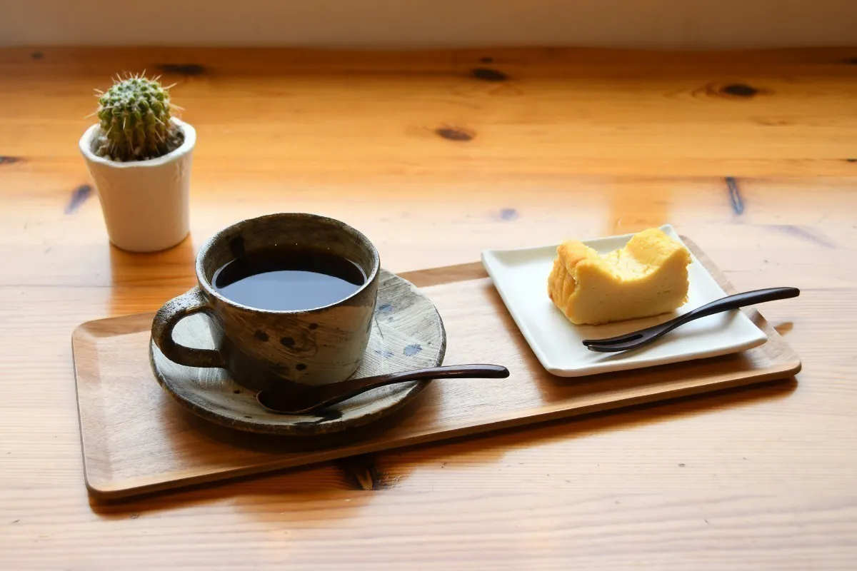 また、カフェで提供されるコーヒーには、秋田県内の日本酒蔵の仕込み水が使われています。水の特徴が感じられるよう、豆はクセのないものを選んで、お店で丁寧に焙煎しています。一見ただのケーキとコーヒーセットに見えますが、酒屋ならではのこだわりメニューなのです。