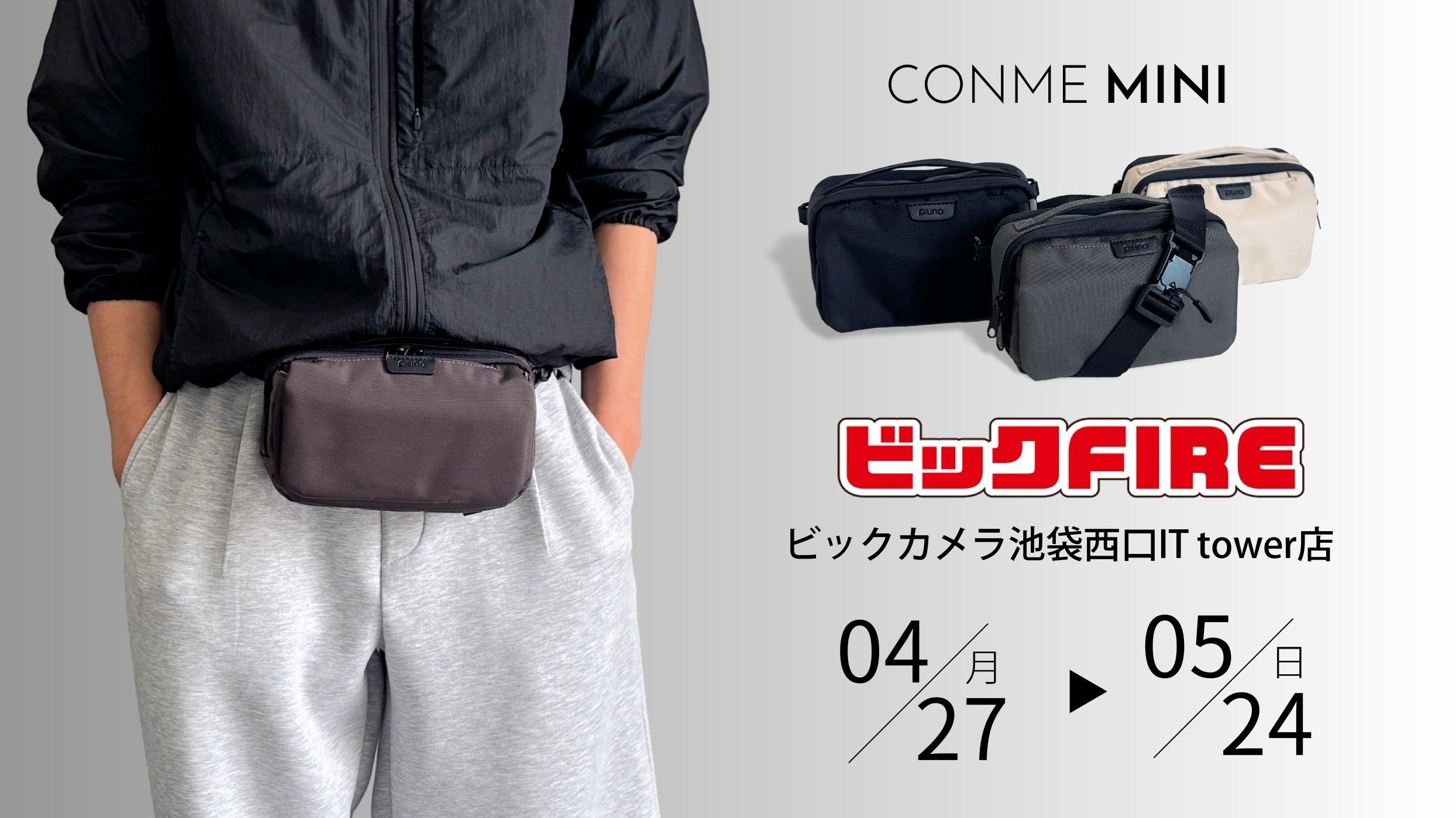 2026/04/26 17:58サポーター、ご覧のみなさま本プロジェクト「CONME MINI」をご支援頂きありがとうございます!ビックFIREで商品展示のご案内ポケット感覚で持ち歩く、手ぶら派のミニバッグ「CONME MINI」を実際にご覧いただけるチャンスです。 CAMPFIREでの先行販売プロジェクト期間中、期間限定で明日4/27より展示いたします!ぜひ店頭でその使い心地を確かめてみてください。 展示場所ビックカメラ 池袋西口IT tower店 3FビックFIRE コーナー展示期間:4月27日(月)〜 5月24日(日) お近くにお寄りの際は、ぜひご来店ください。皆様のお越しをお待ちしております。▶ CAMPFIRE先行販売プロジェクト実施期間:4月26日(日) - 5月31日(日)プロジェクトページはこちら➡スタッフ一同 もっと見る【本日公開】手ぶらミニバッグの「CONME MINI」