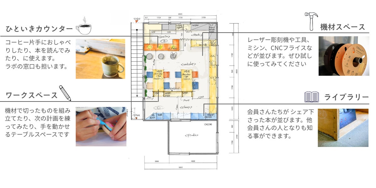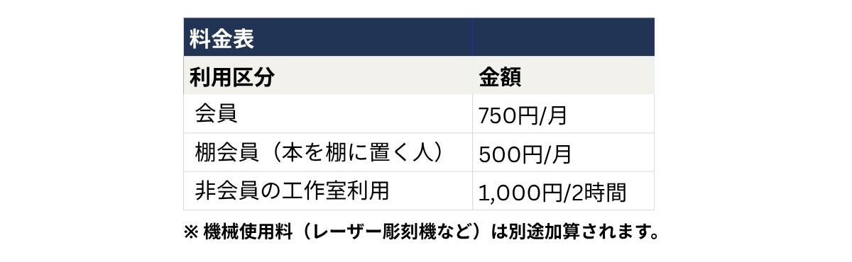 1回のランチ代ほどの月会費。本を借りたり、工作室で作業したり、ふらっと立ち寄ったりできます。何度でも来てほしいから、この料金にしました。