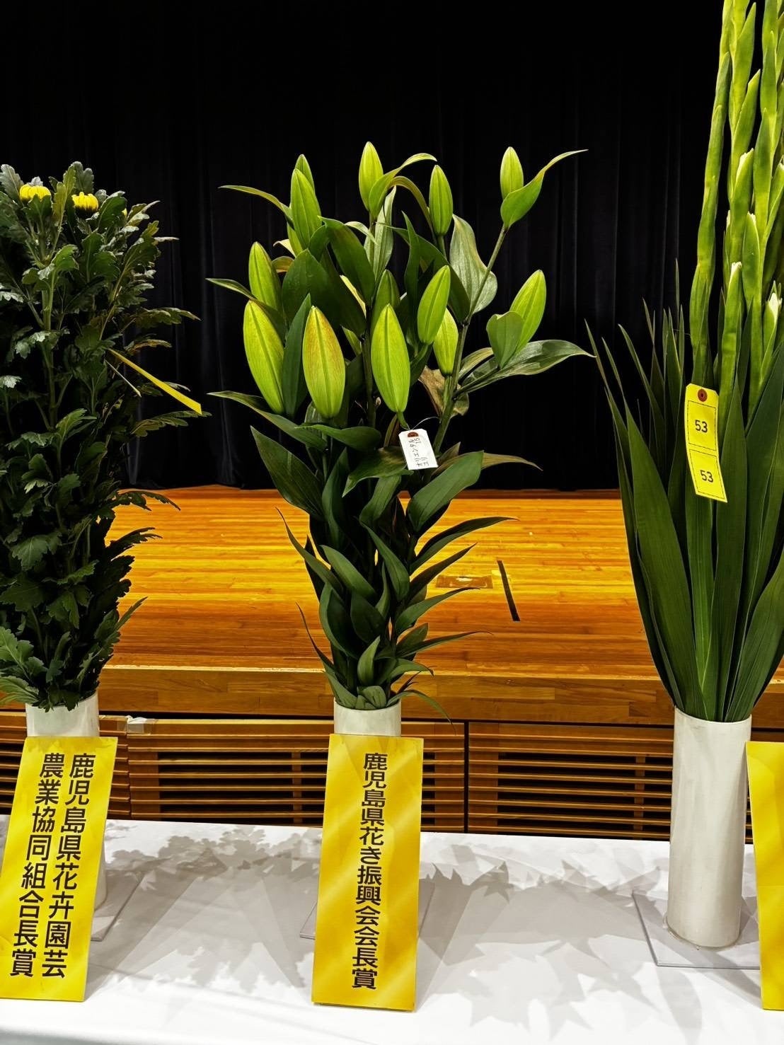 麦芽粕には、窒素・リン酸・カリという栄養分が豊富で、土壌の微生物を活発化させます。その成果として、力強い花が育ち、初めて鹿児島県花き振興会会長賞(写真、中央)を受賞することができました!