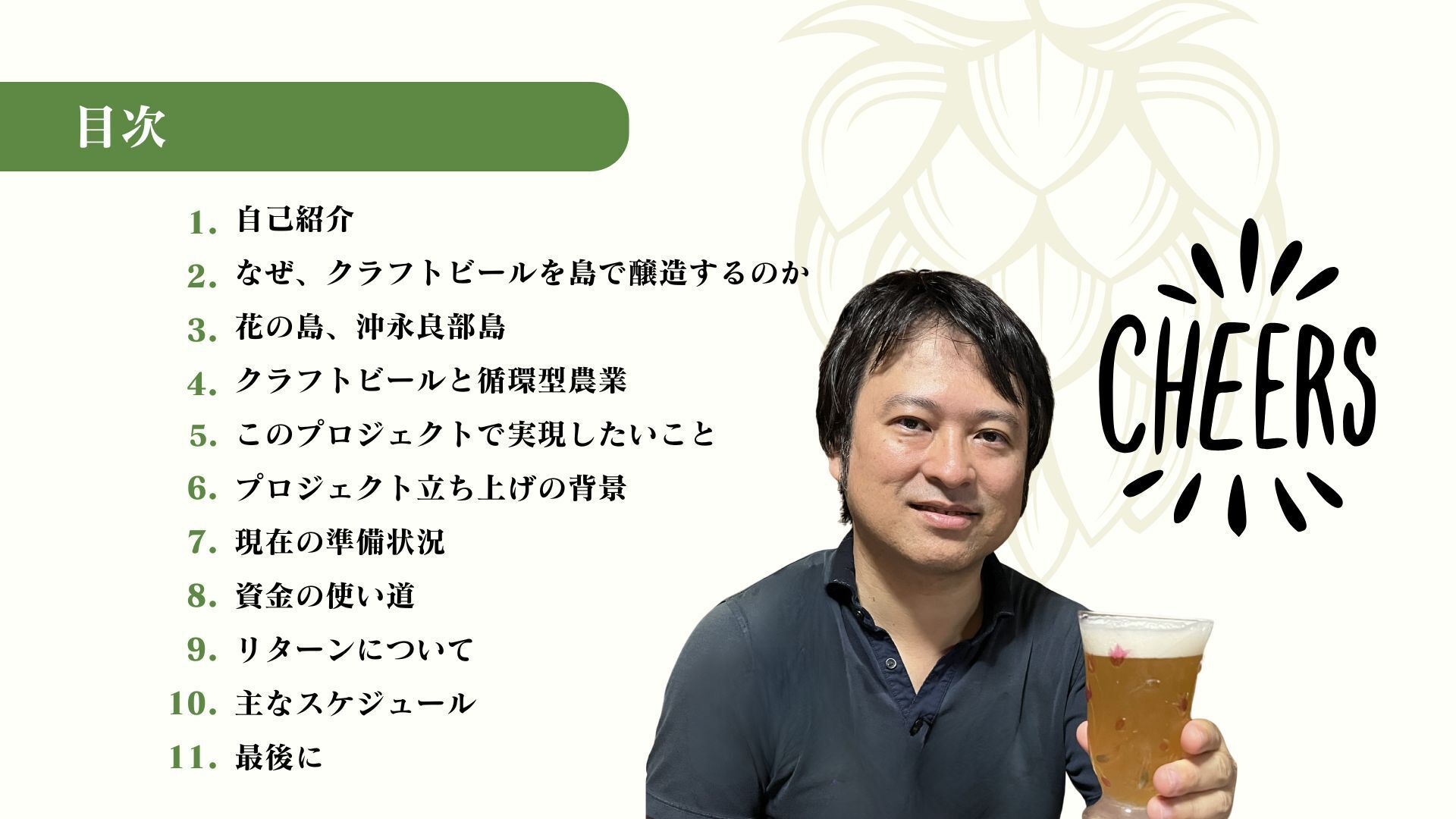 フローラルビールの醸造をとおして、沖永良部島の農業・飲食業・観光業を盛り上げたいと考え、このプロジェクトを立ち上げました。