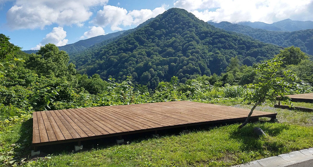 ◆キャンプ用ウッドデッキ(6名ほどの大きなテントも設置可能)
