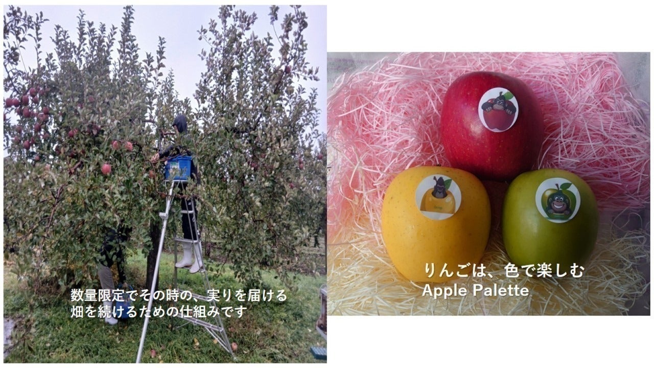 現在は、りんごの新しい価値や届け方を模索しながら、「Apple Palette」という形で、品種ではなく‟色”で楽しむりんごの販売に取り組んでいます。