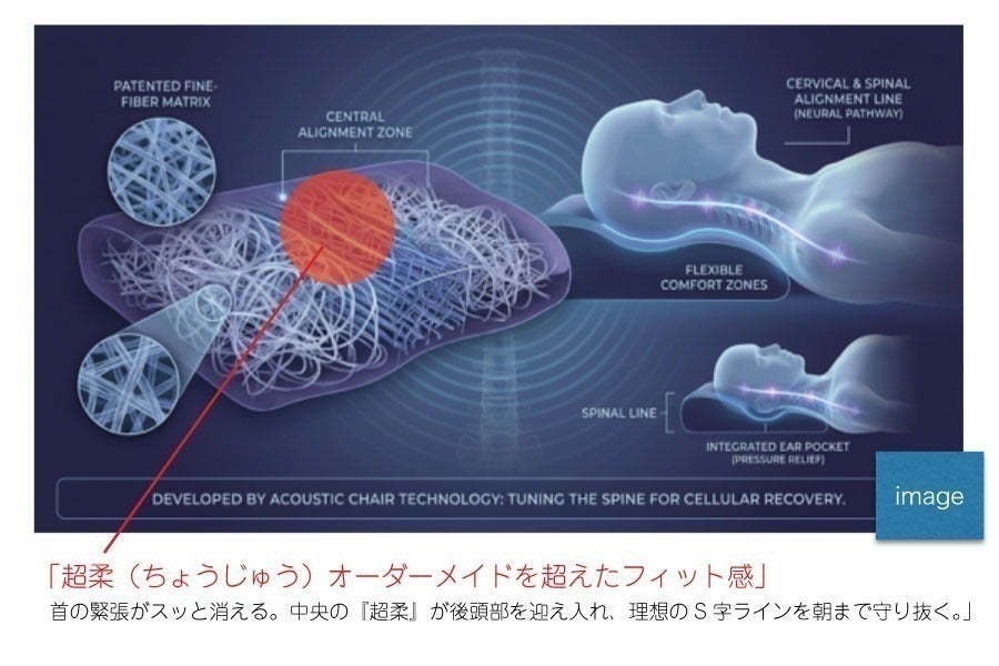 まるで全身の細胞が共鳴し、調律されるような感覚。脊髄に音の振動を伝えることで、身体の深部からリラックスさせる特殊な椅子の研究開発を25年続けてきました。しかし、その体験は「椅子に座っている間」という限られた時間だけでした。人生の3分の1を占める睡眠時間こそ、この技術が必要と考え「眠り」への転換と挑戦をしていきます。
