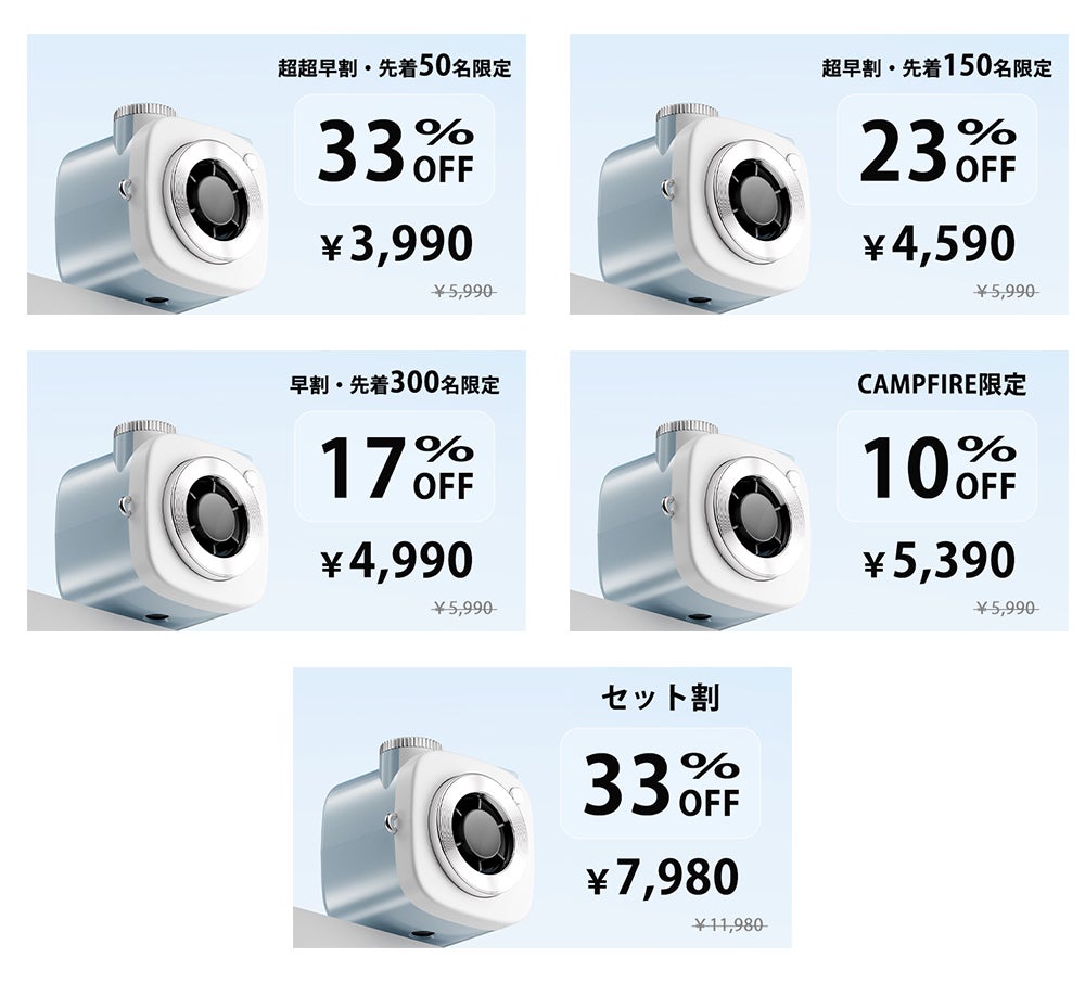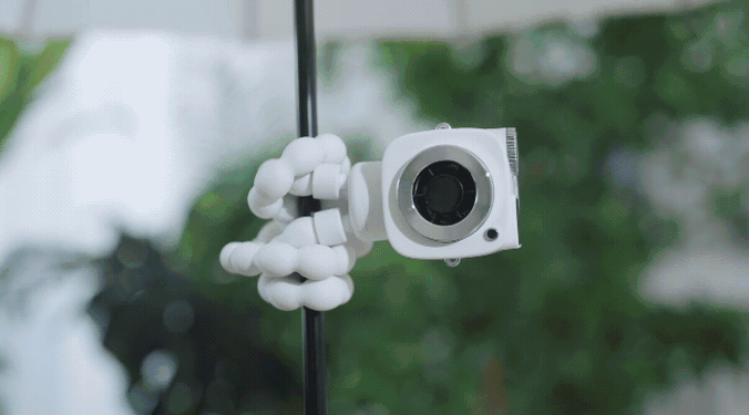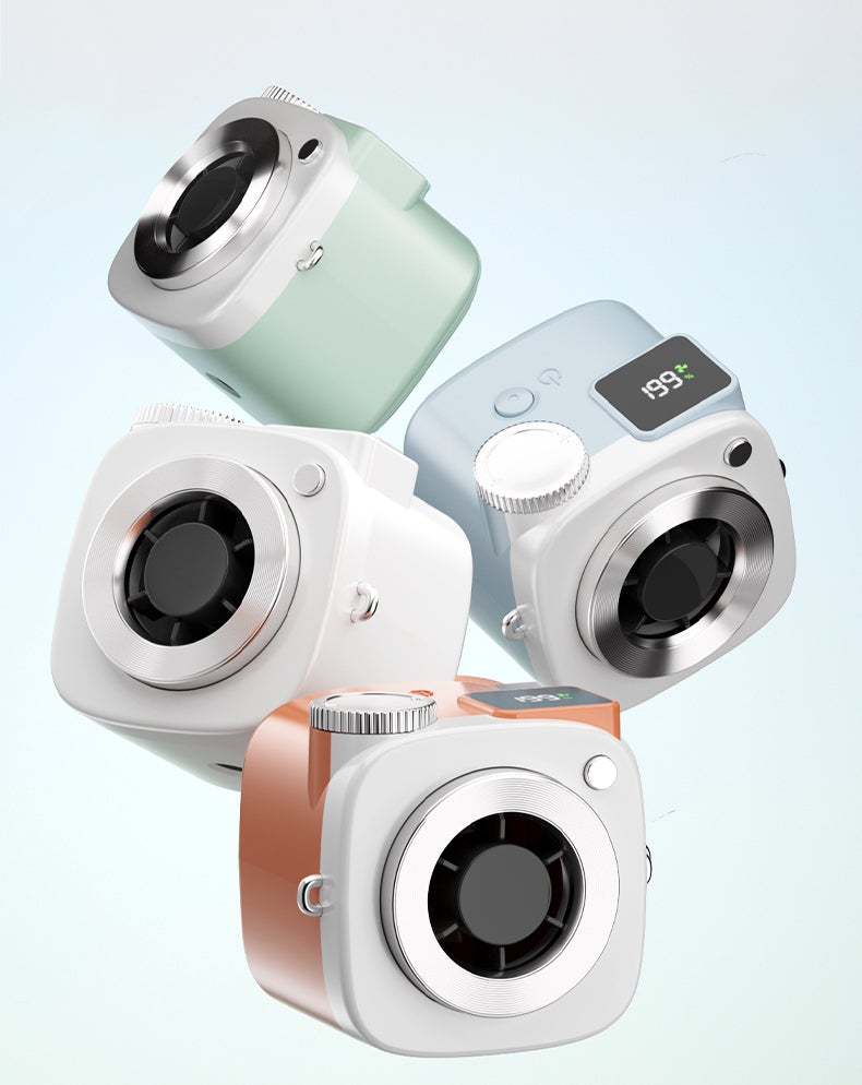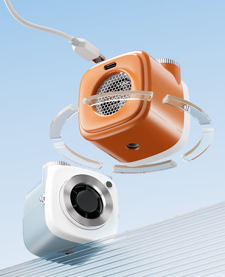 どこでも瞬時に装着、タコスタンド付きの次世代ミニファン、安心の羽根隠しデザイン