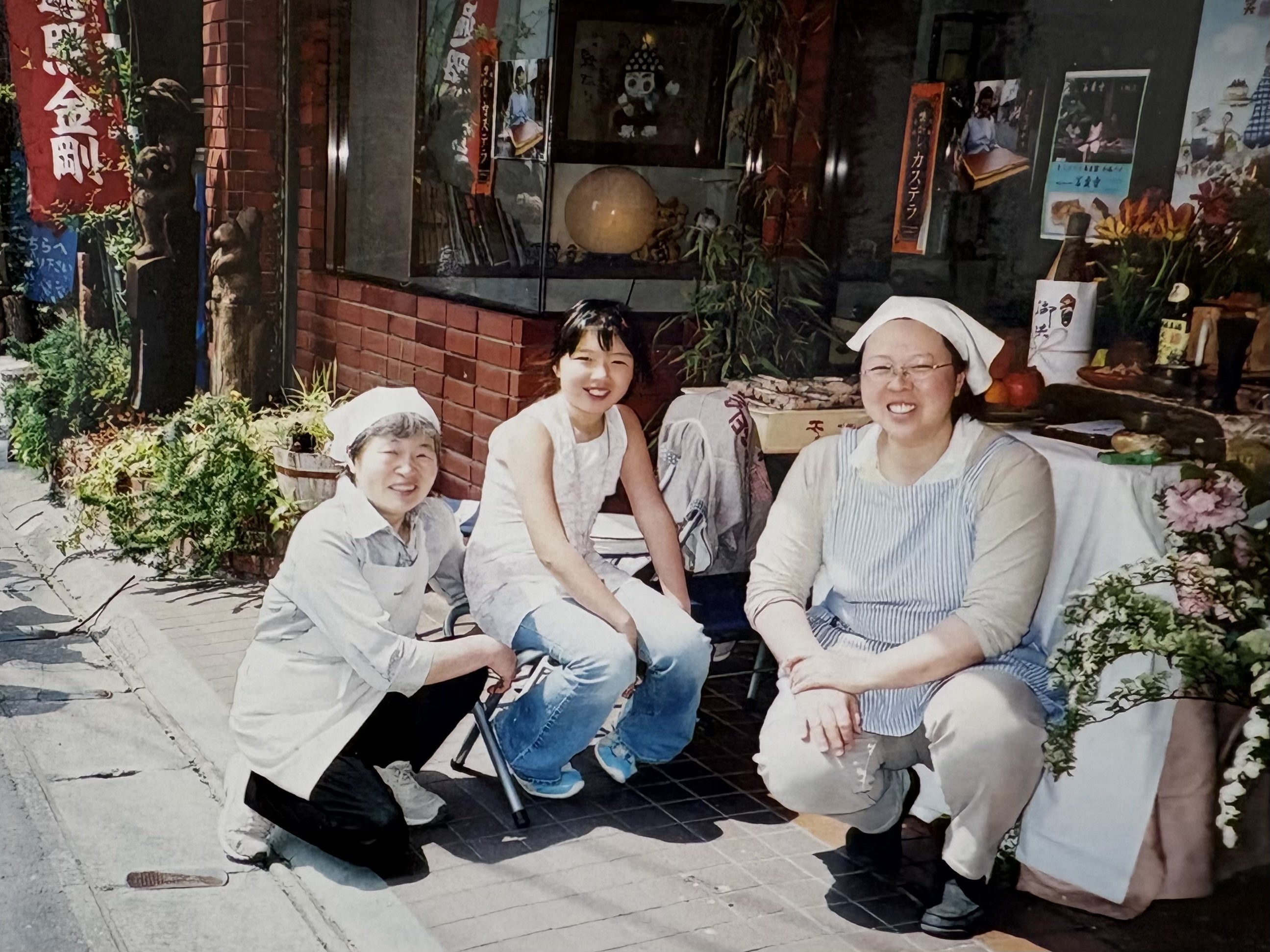 母と祖母と実家の店前で撮った写真