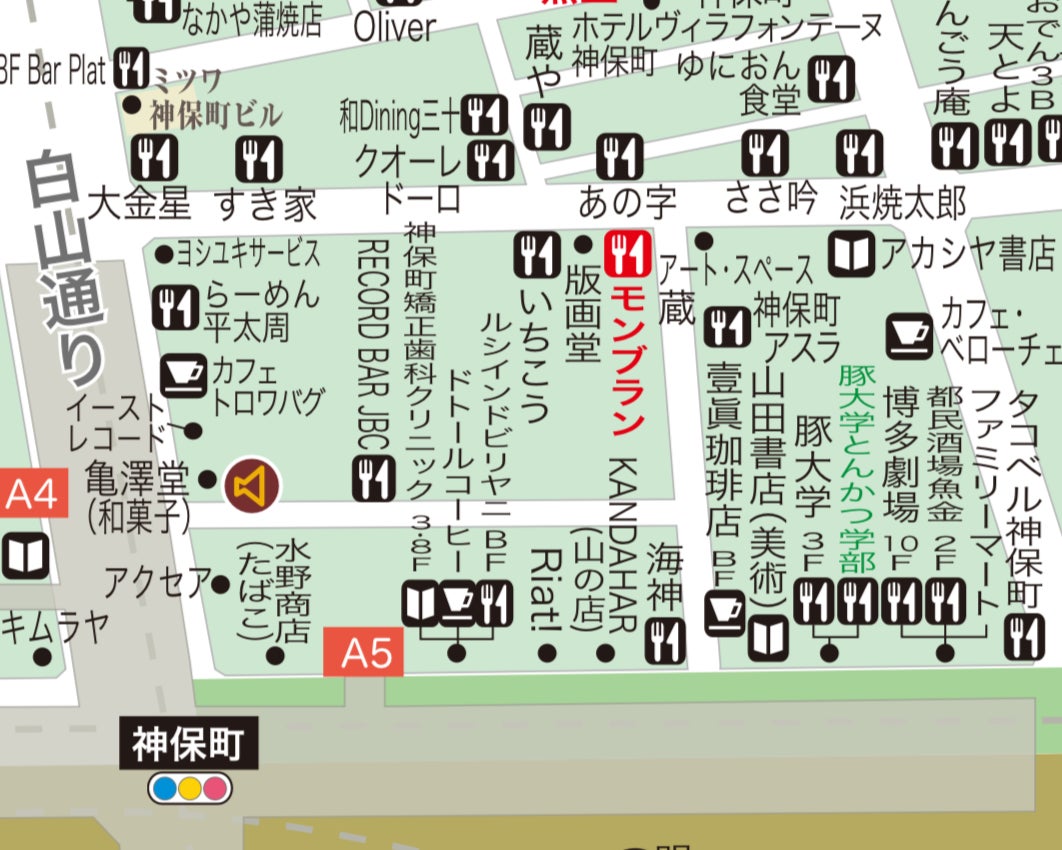 神保町地域限定フリーペーパー『おさんぽ神保町』に掲載予定の地図。掲載許可を頂いております。