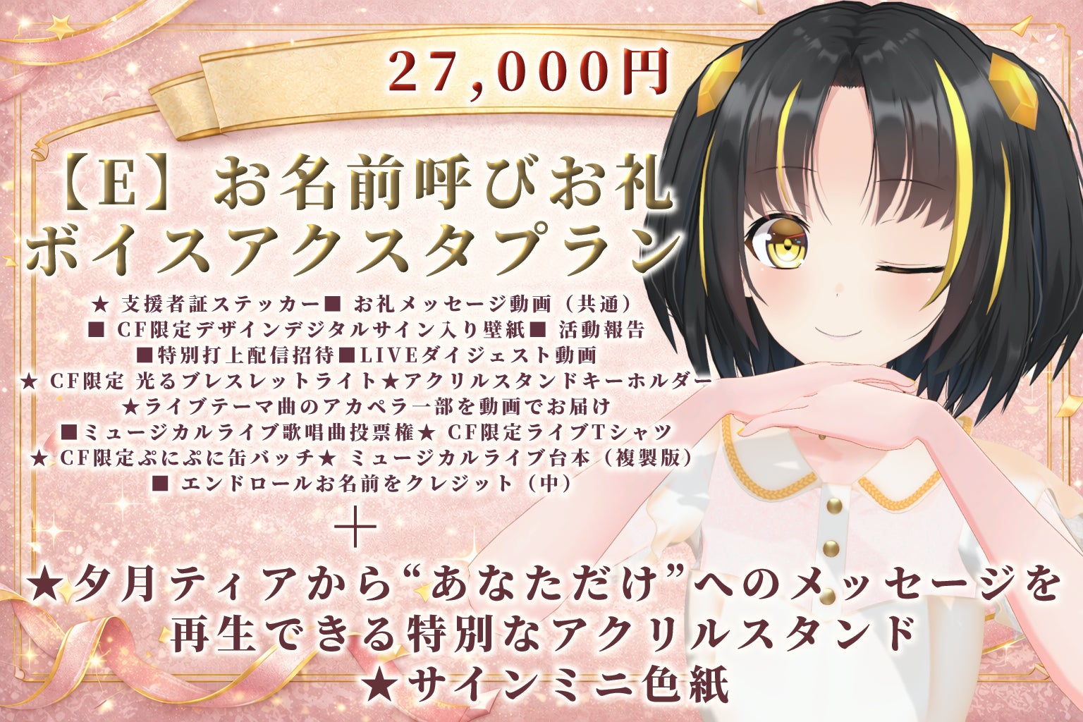※夕月ティアに呼んで欲しいお名前をCAMPFIREご支援時の備考欄に希望名をご記入ください。ニックネームも可能です。不要の場合は、備考欄へ 「不要」とご入力ください。