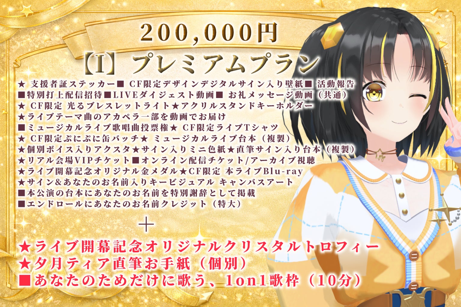 リターンはいらないけど、こっそり夕月ティアのミュージカルライブを応援したい!といった方に向けたプランです。