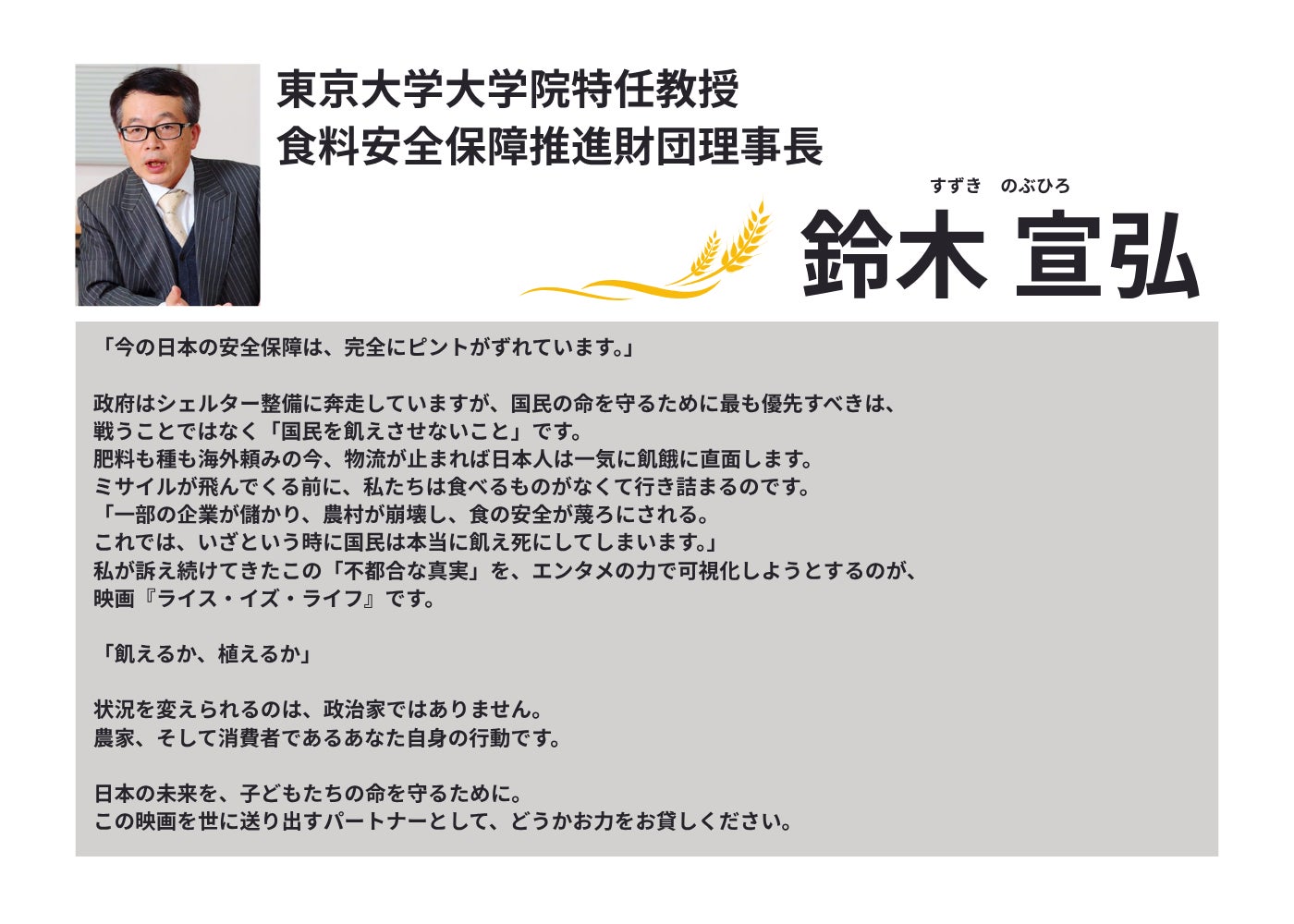 ただやはり「食」ってのは、自分たちの生きる根幹であり、国の文化の根幹であり、歴史であり、果ては、国防にもつながったりもするのでその辺りを包括的に描かねばならぬという思いです。登場人物には農家の方はもちろん、ただそれも慣行農法でやってる方もいれば、自然農法でやってる方もいる、農協の中でもがいてる人もいる、農協を批判してる人もいる。グローバル化を進めようとする政治家がいる、それを批判する地元の新人もいる。いろんな立場のいろんな考えが渾然一体となって縮図を見れるのが映画の良さであり、醍醐味だと思います。何がいい悪いではないですが、俯瞰でその物事を見つめてもらって、何か少しでも感じ取ってもらえれたら、今日もご飯も美味しく食べられそうです。