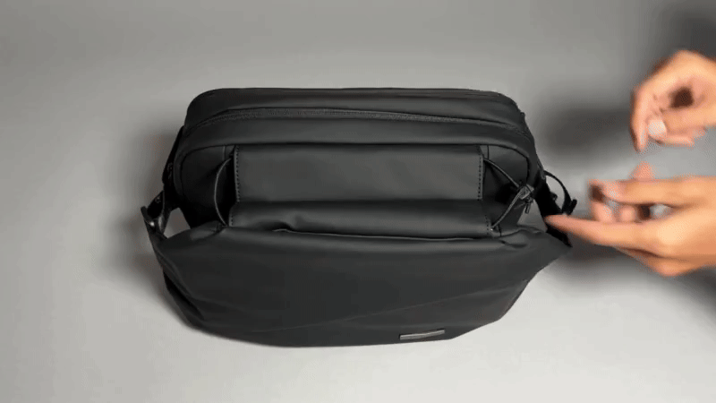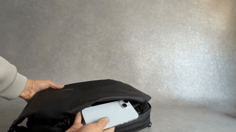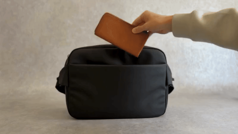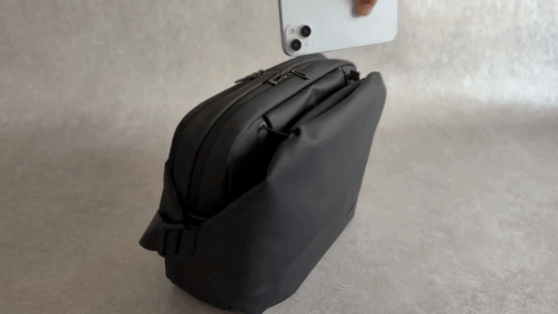 スッと手を入れれば自動で開くマグネット構造。ファスナーをいちいち開閉する必要はありません。
