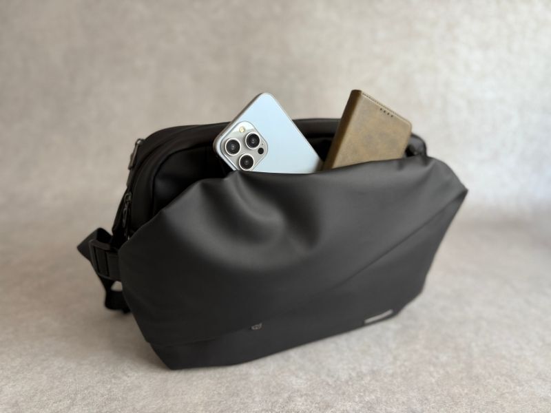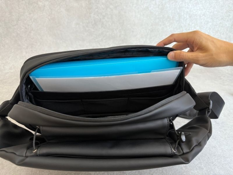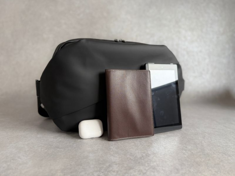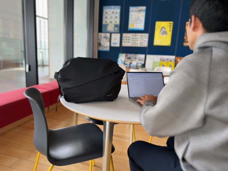 リュックのようにわざわざ降ろす必要がないから、小休憩で立ち寄ったカフェでもサッと取り出し、クライアントからのメールをチェック。