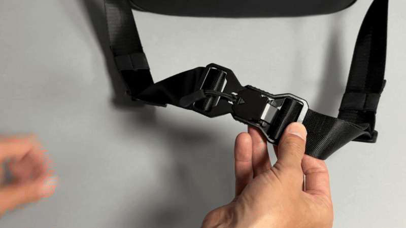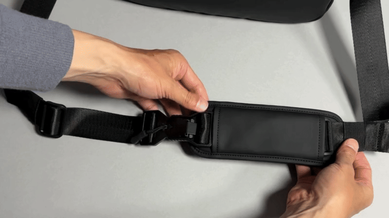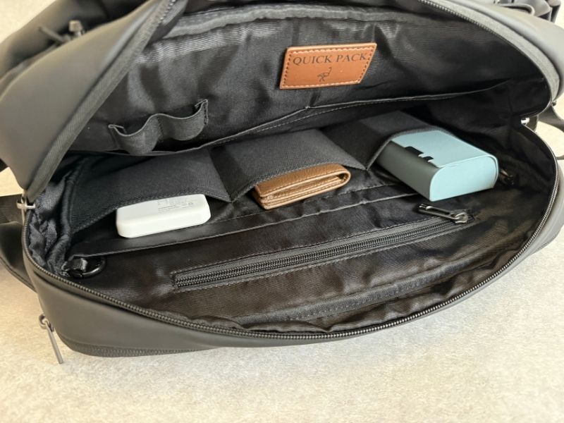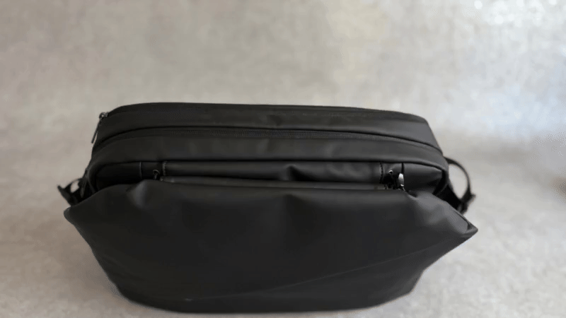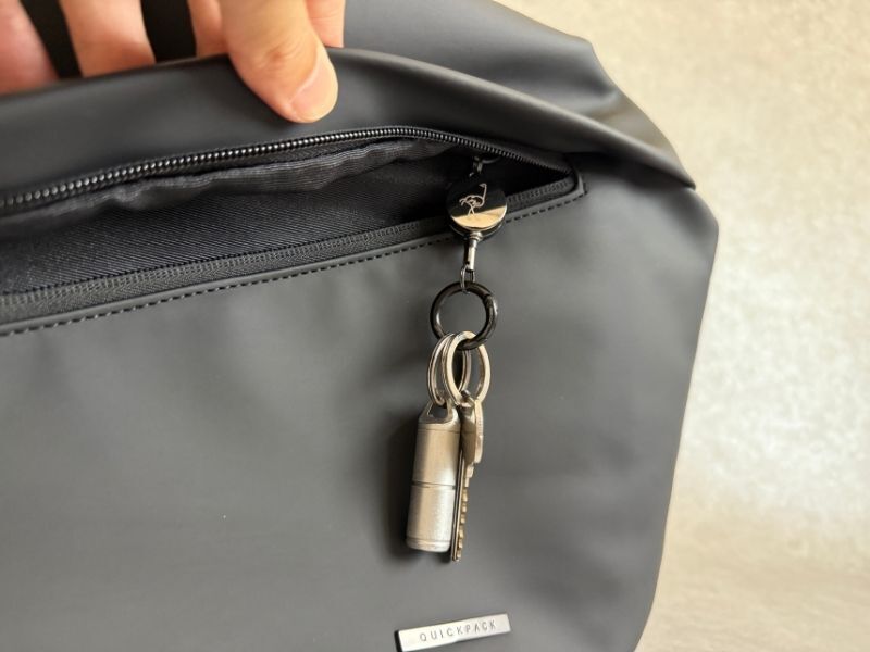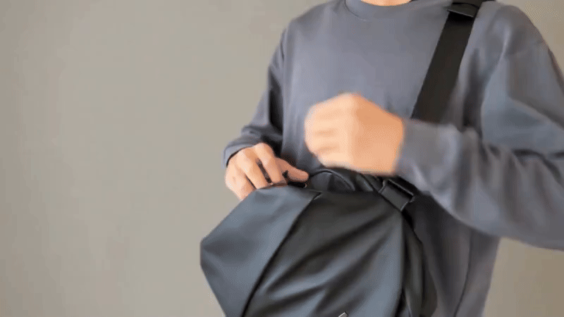 そのまま背負えばベルトでギュっと締まる構造で、毎回ファスナーを開け閉めする必要はありません。
