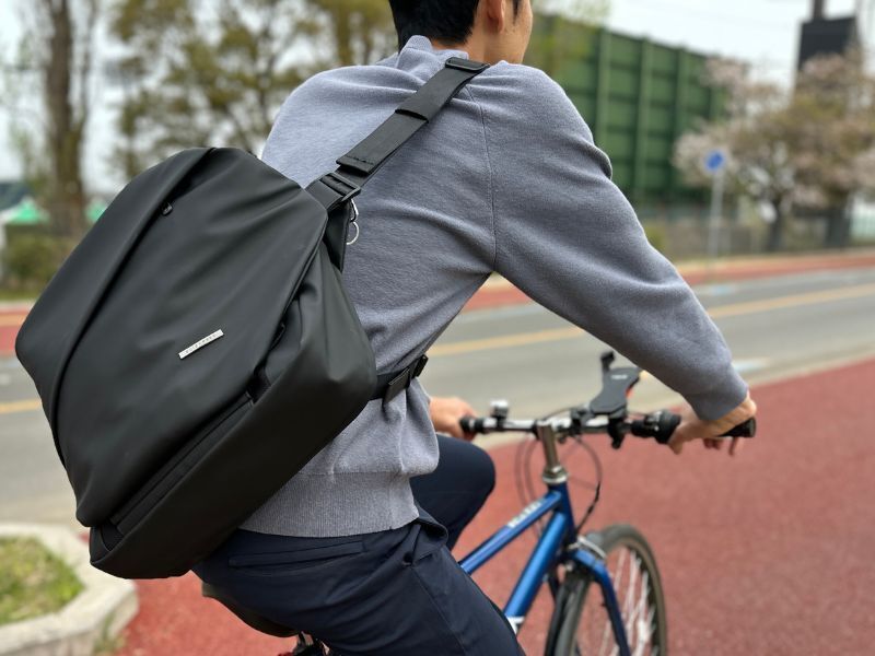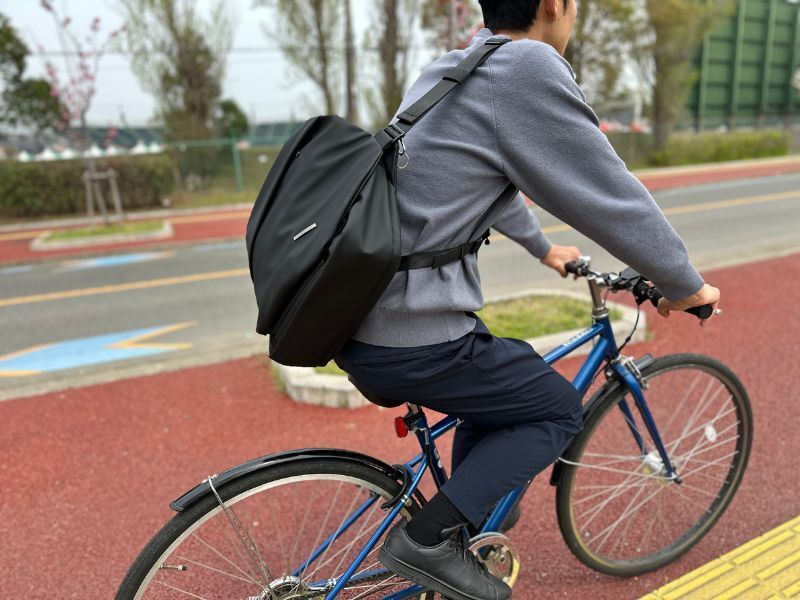 自転車通勤の方、リモートワークでPCをカフェやワーキングスペースに持ち歩くようなワークスタイルの方におすすめです。サイクリング、ツーリングが趣味の方には上着やレインコート、ドリンクを入れてのご使用がおすすめです。