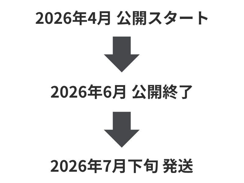 プロジェクト公開後の発送となりますので、2026年7月下旬を予定しています。
