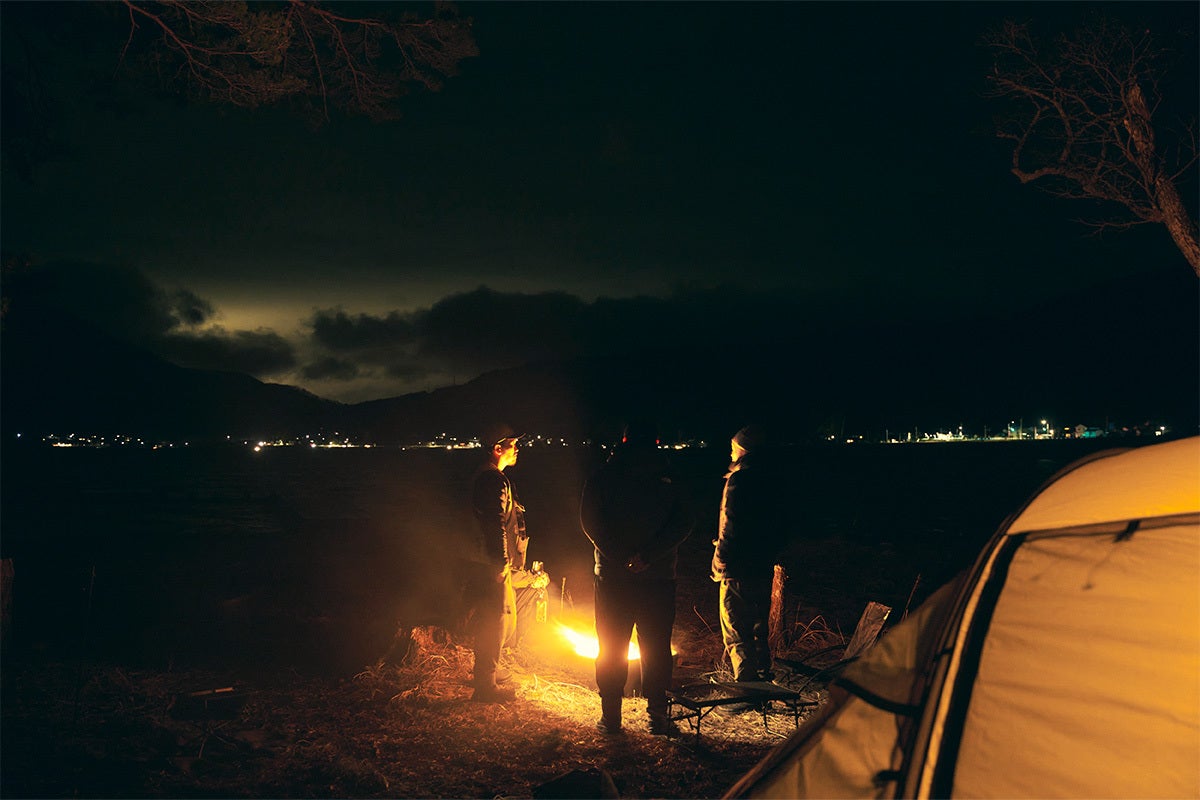 景色を眺め、湖に触れ、風や水の音に耳を澄まし、焚き火を囲む。