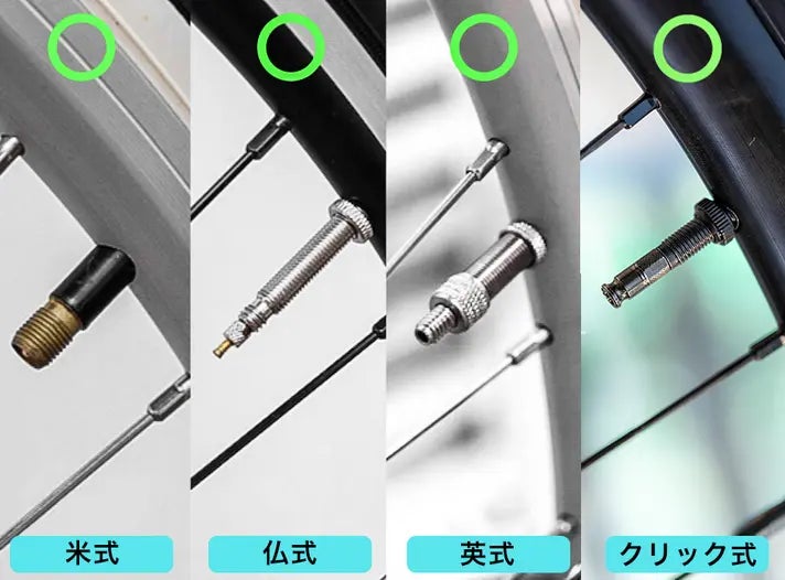 ※5in1兼用エアホースの米・仏・英・クリック式バルブの切り替え方法は5in1兼用アダプターと同様です。