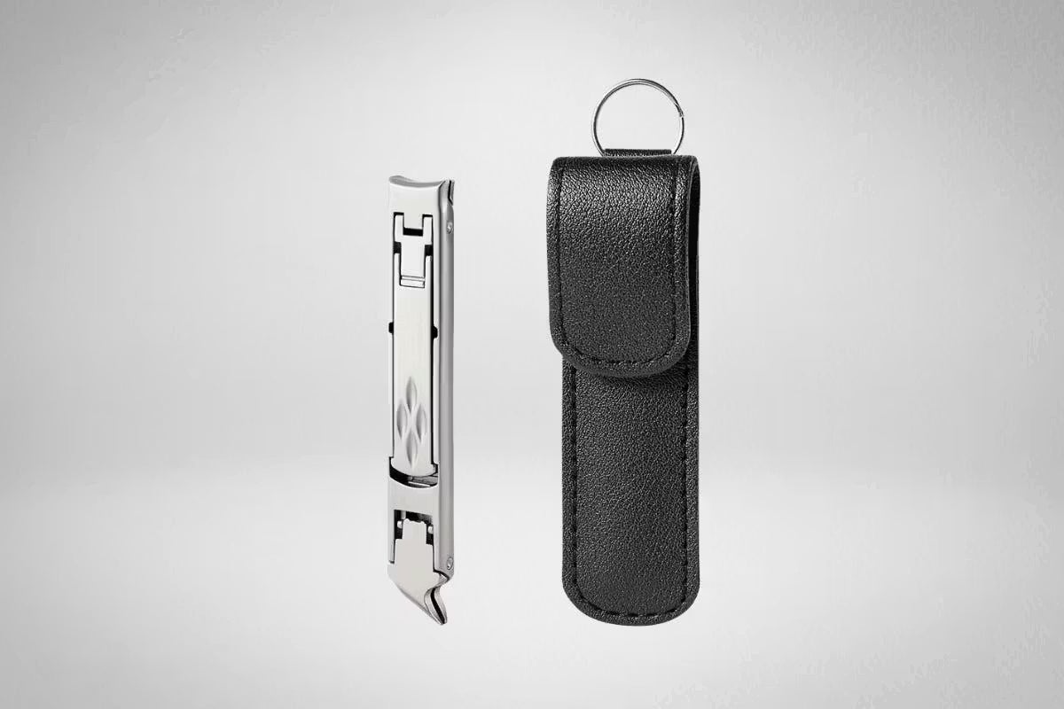 『DualEdge』は高級感のある革の収納袋付きです。 収納時に爪切りをしっかり保護し、傷や汚れを防ぎます。コンパクトで持ち運びにも便利なので、自宅だけでなく旅行や外出先でも清潔に保管できます。
