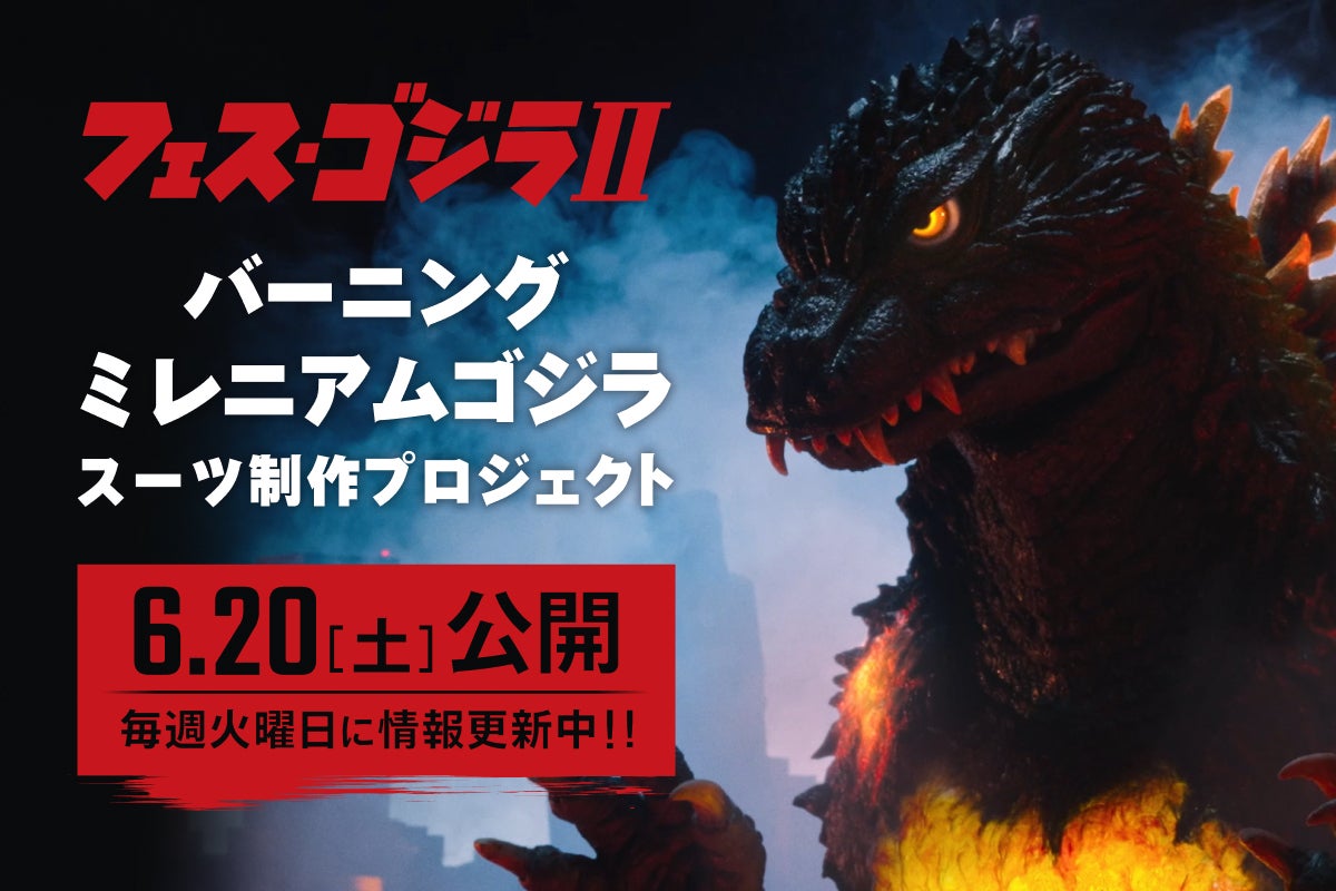 ゴジラ・フェス恒例の完全新作特撮シリーズ『フェス・ゴジラⅡ 東京消失』制作が決定!本作に登場する「バーニングミレニアムゴジラ」のスーツをファンの皆様と共に作り上げるクラファンがまもなく始動します。あなたの支援が、ゴジラの胸を赤く燃やし、特撮の未来を照らす光になる—— ご支援お待ちしております!