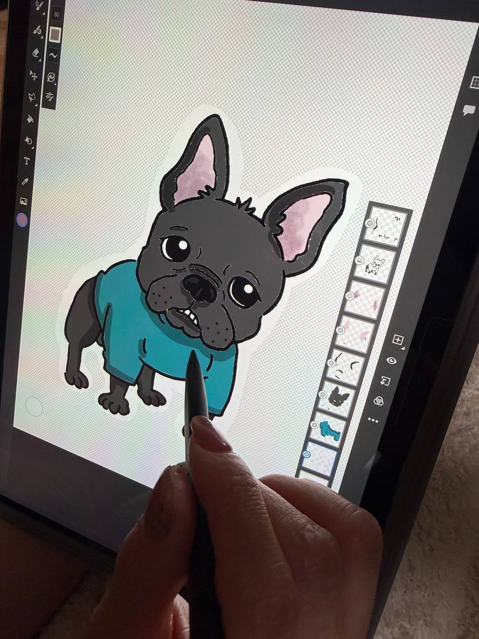お客様のペットをイラスト化する制作工程のことです。