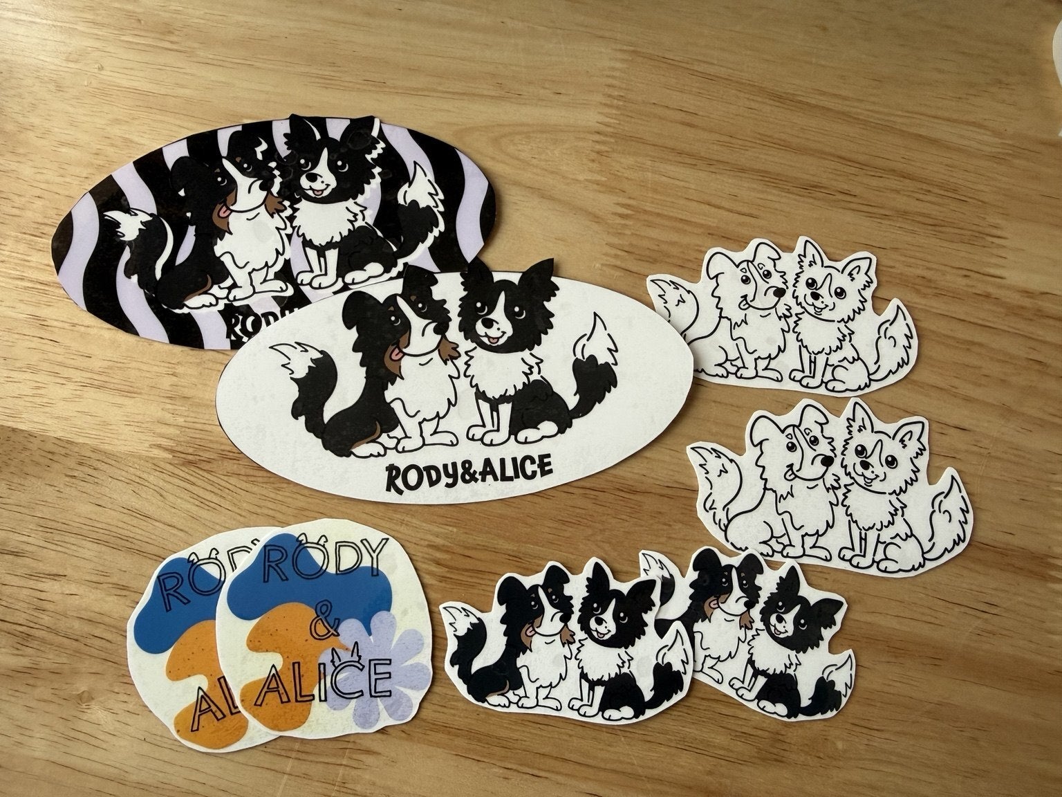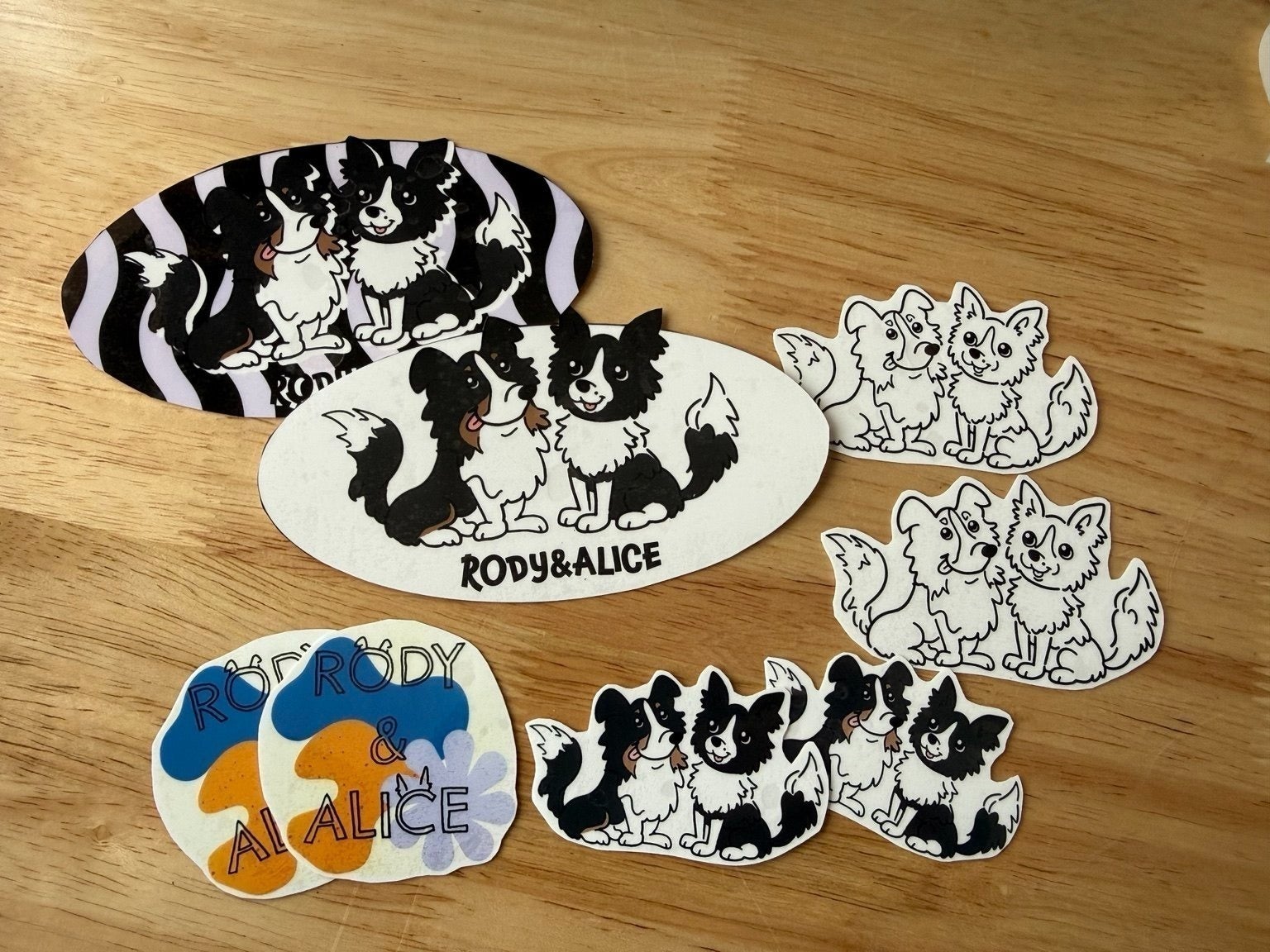 私たちの愛犬、シェルティのろでぃとボーダーコリーのありすを描いたオリジナルステッカーです。