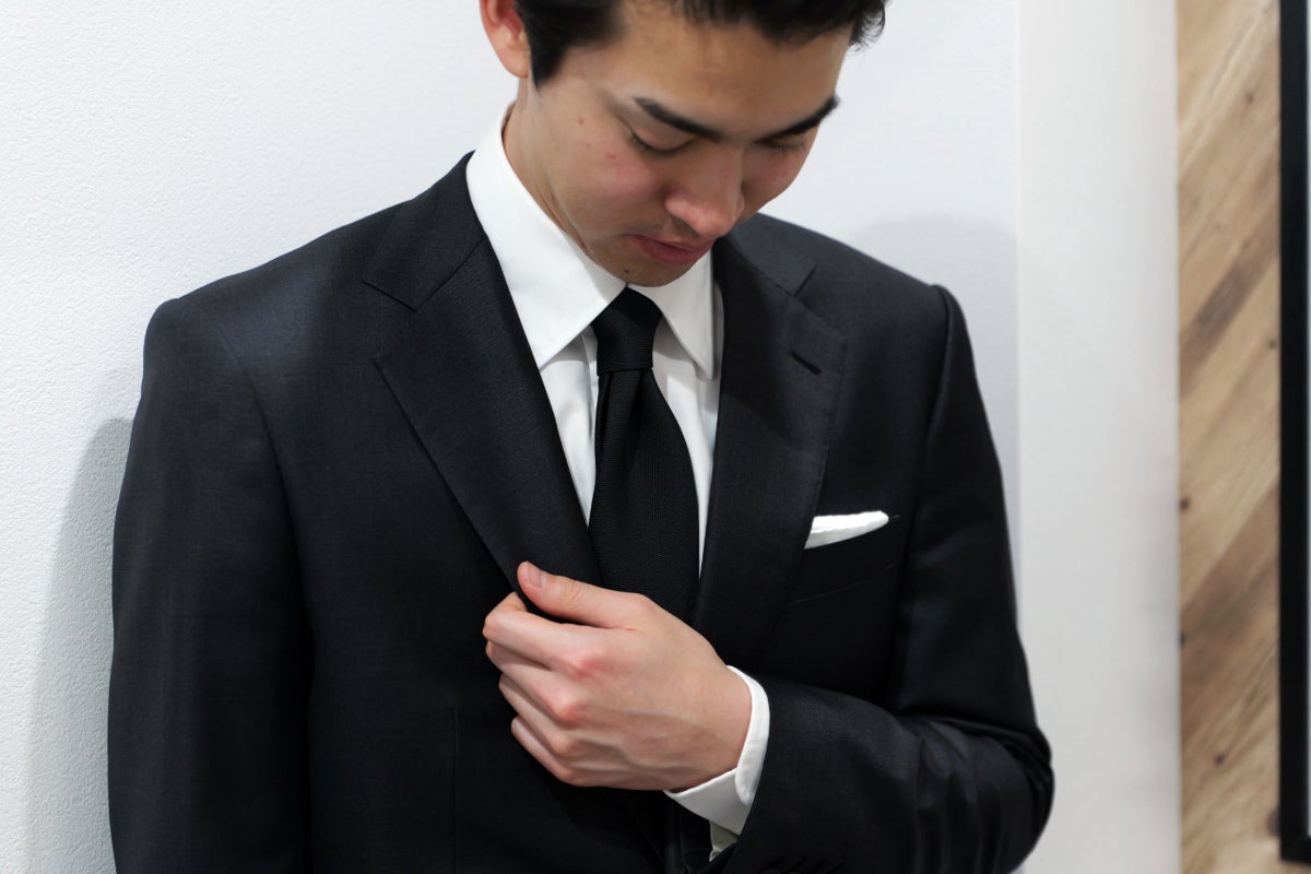 廣川氏と意気投合し、一緒に事業をやっていこうと思った折、まずは廣川のフルオーダースーツを体験してみたいと思いました。