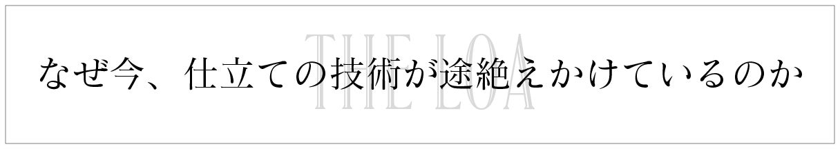 私たちが立ち上げたTHE LOAは、「Legacy Of Artisan(職人技術の伝承)」を意味するブランドです。