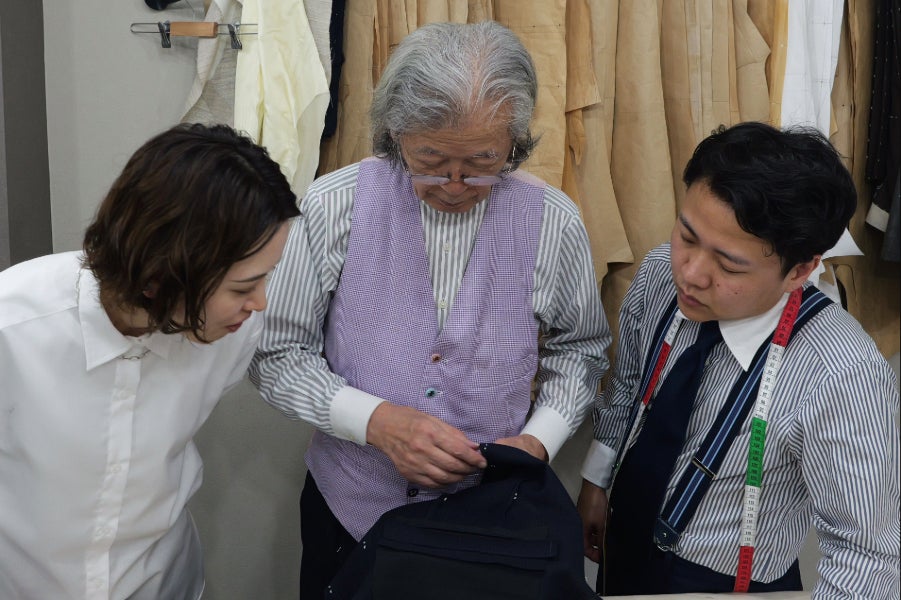 82歳の現役マスターテーラーの技術を、繊維工学の研究者が次世代の職人へ繋ぐ。