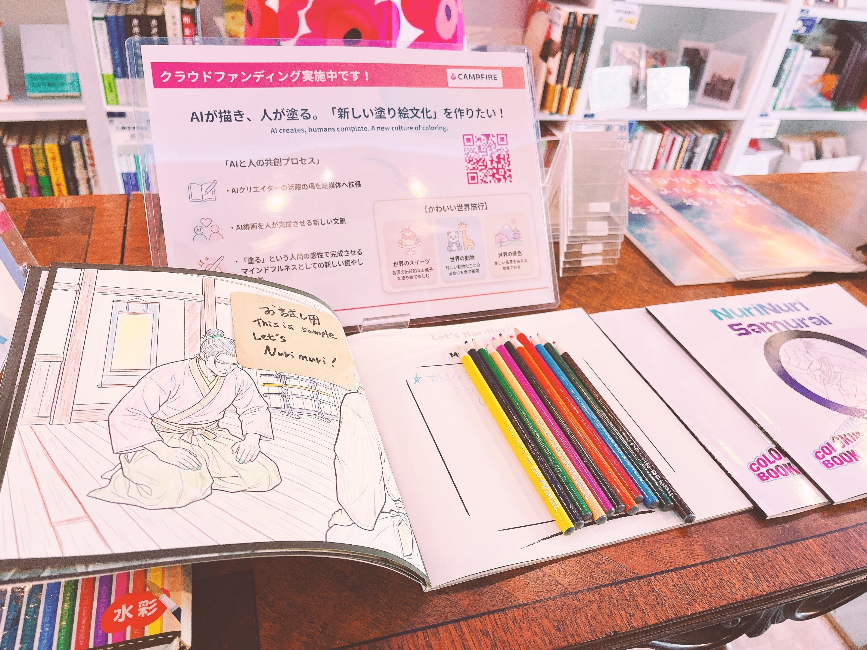 その中で、「塗り絵本のサンプル」を置かせていただきましたところ、お子様連れのご家族も一緒にぬりぬり。