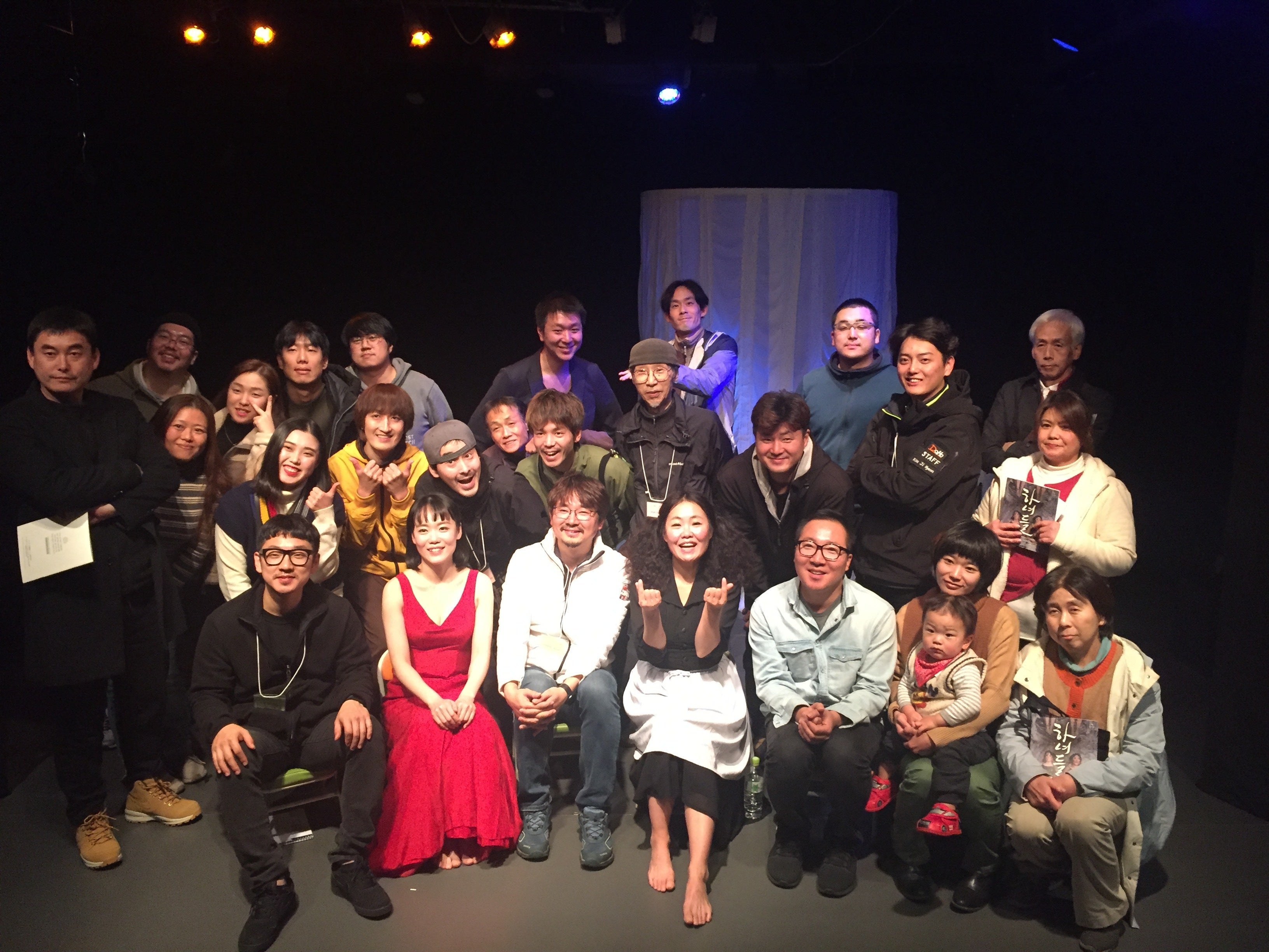 2019年12月にスタジオ犀で行われた第二回Glocal theater Festivalの集合写真。参加劇団は劇団アンゲルスと劇団DOMO、韓国の劇団文化創作集団Gongter-DA。